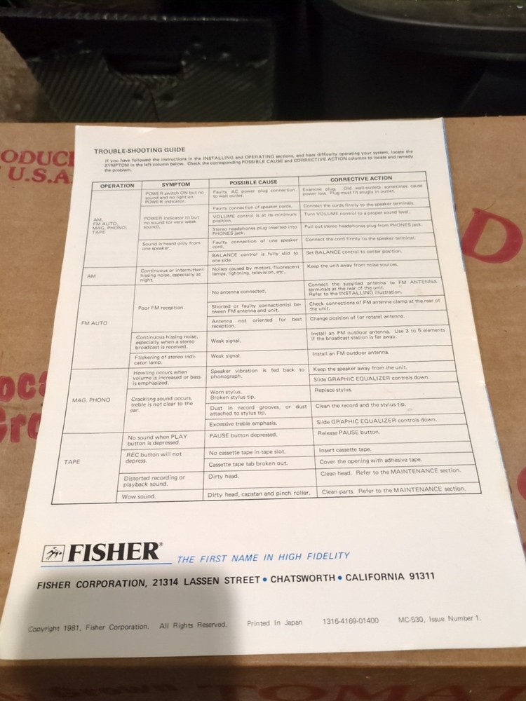 This is a vintage operating instruction manual booklet for the Fisher MC-530 Audio Component System. It provides information on how to use and troubleshoot the system. The manual is a valuable resource for those who own or collect vintage audio equipment. The booklet is in good condition and contains detailed information on the features and functions of the Fisher MC-530. Whether you are a vintage audio enthusiast or a collector, this manual is a must-have. Buying this vintage electronic manual I've shown lots of other vintage electronic manuals also listed along with military surplus new and used car parts. New tools vintage HO train items us coins us stamps vintage electronics something for everyone. Please take the time to look at some of my other listings