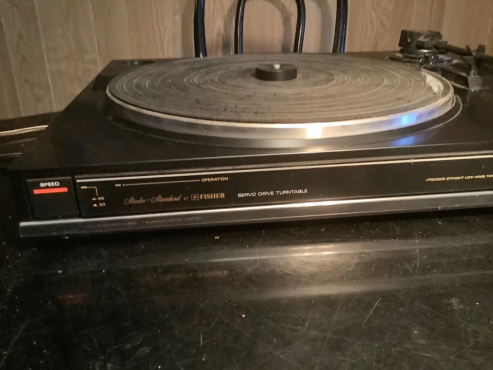 Vintage stereo phonograph turntable, n.o.s., designed for use with Fisher CA-854B integrated altered amplifier with remote - but can be connected to any suitable amplifier. This item was part of a package being System 8738D.Never used, does not come with a dust cover due to it being in a cabinet (for which this item was never installed). One defect is that the rubber mat for the turntable platter is deteriorating, but should be easily available.