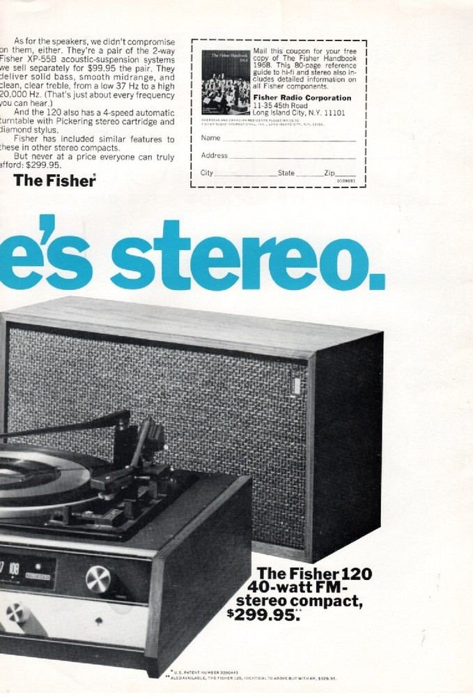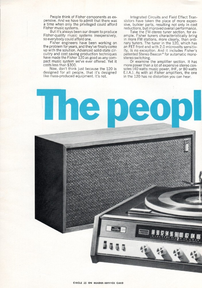 Fisher - Model 120 Stereo System - Original Magazine Ad - 1968 Very good Condition. (Lot# - AUD-30-11) Shipping to the U.S. is 3.65 - International shipping - Ebay international shipping program Payment is by Ebay Managed Payments