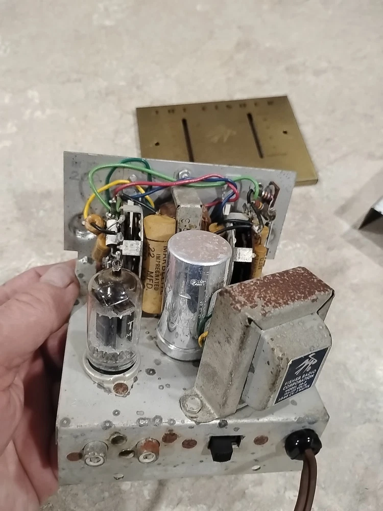 This has a cord repair. Comes with tung sol 12ax7 This vintage Fisher 50-F tube hi-lo filter system has been tested and is in working condition. Designed and manufactured in the United States, this vacuum tube filter is perfect for collectors or enthusiasts looking to add to their vintage audio and video collection. The brand Fisher is known for producing high-quality audio equipment, and this tube filter is no exception. Erack4