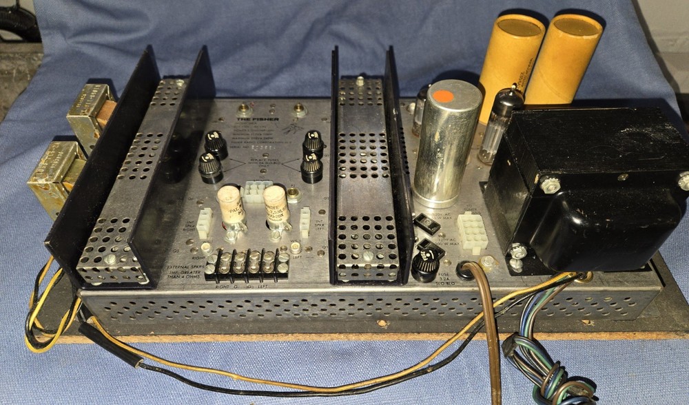 Here, we have an awesome representation of vintage Fisher electronics as we came into a transistor era. This is the 1964 model 59-a, which features both tube and transistor.... I guess you can call it a hybrid. The unit it is in great shape and was pulled from a working cabinet, but cabinet condition was not very good. Tubes will be packed separately to avoid ant breakage