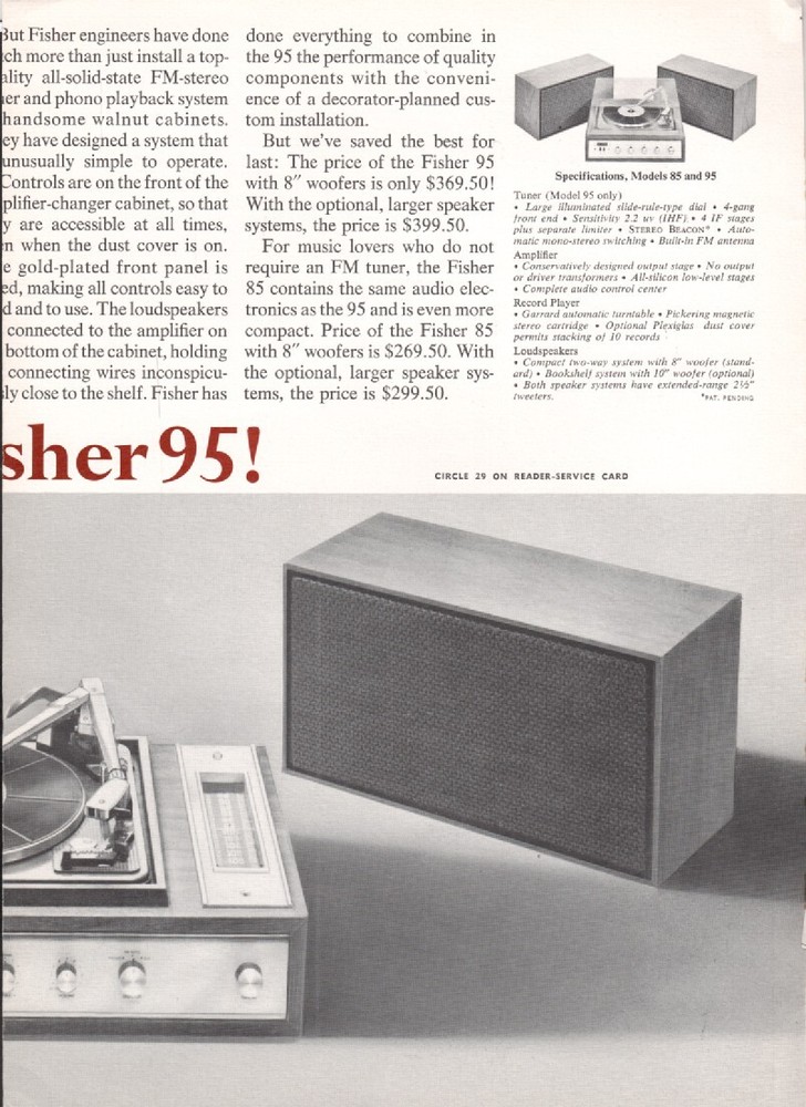 Fisher - Model 95 Stereo System - Original Magazine Ad - 1966 Very good Condition. (Lot# - AUD-30-13) Shipping to the U.S. is 3.65 - International shipping - Ebay international shipping program Paymen...