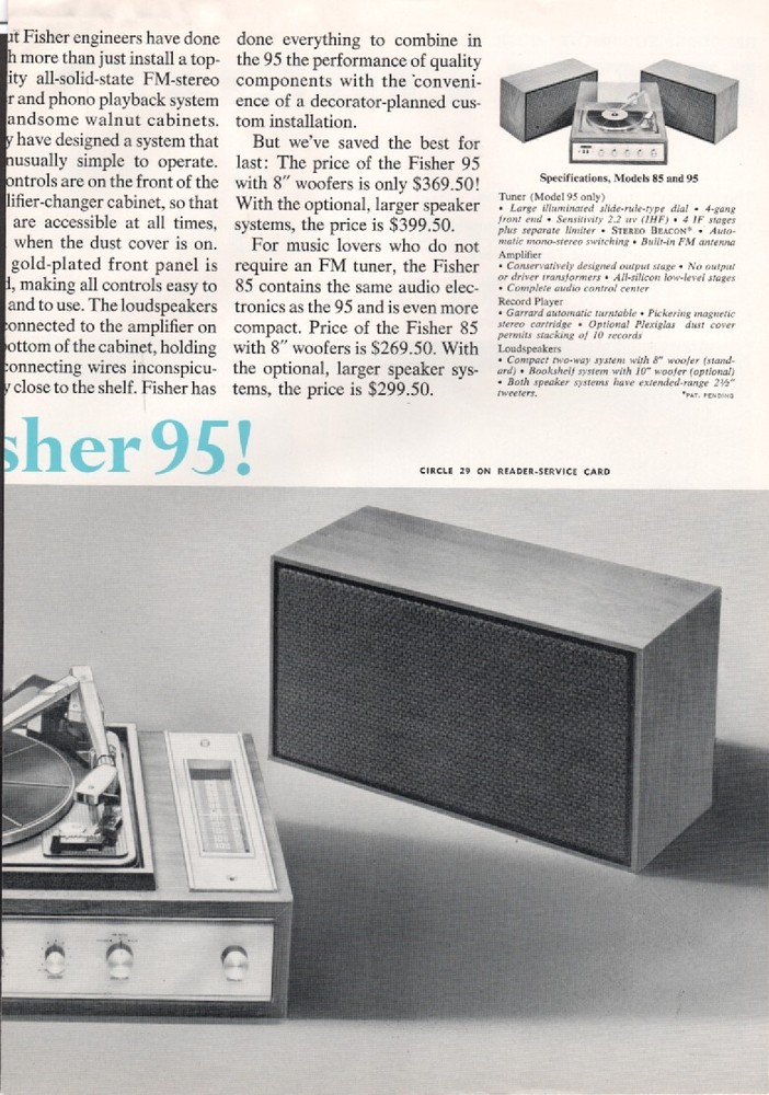 Fisher - Model 95 Stereo System - Original Magazine Ad - 1966 Very good Condition. (Lot# - AUD-30-12) Shipping to the U.S. is 3.65 - International shipping - Ebay international shipping program Paymen...