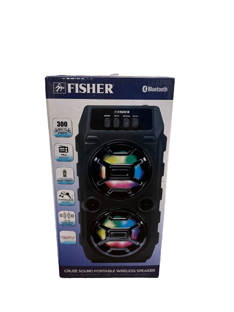 Fisher Portable Bluetooth Speaker LED. Condition is New. Shipped with USPS Ground Advantage....