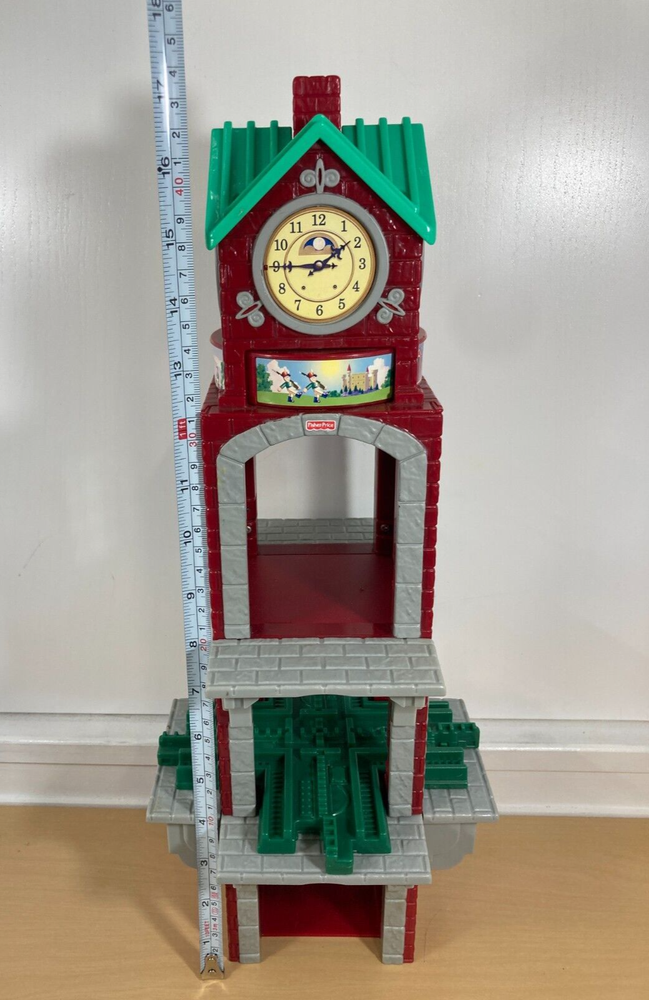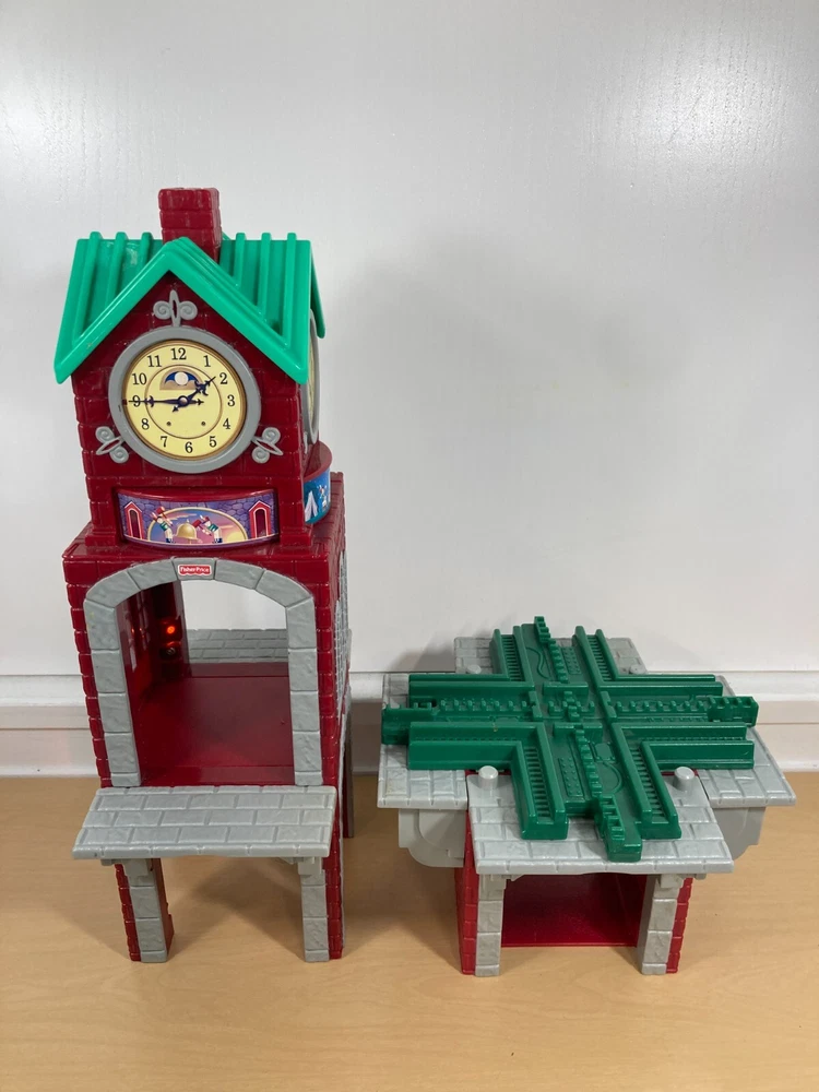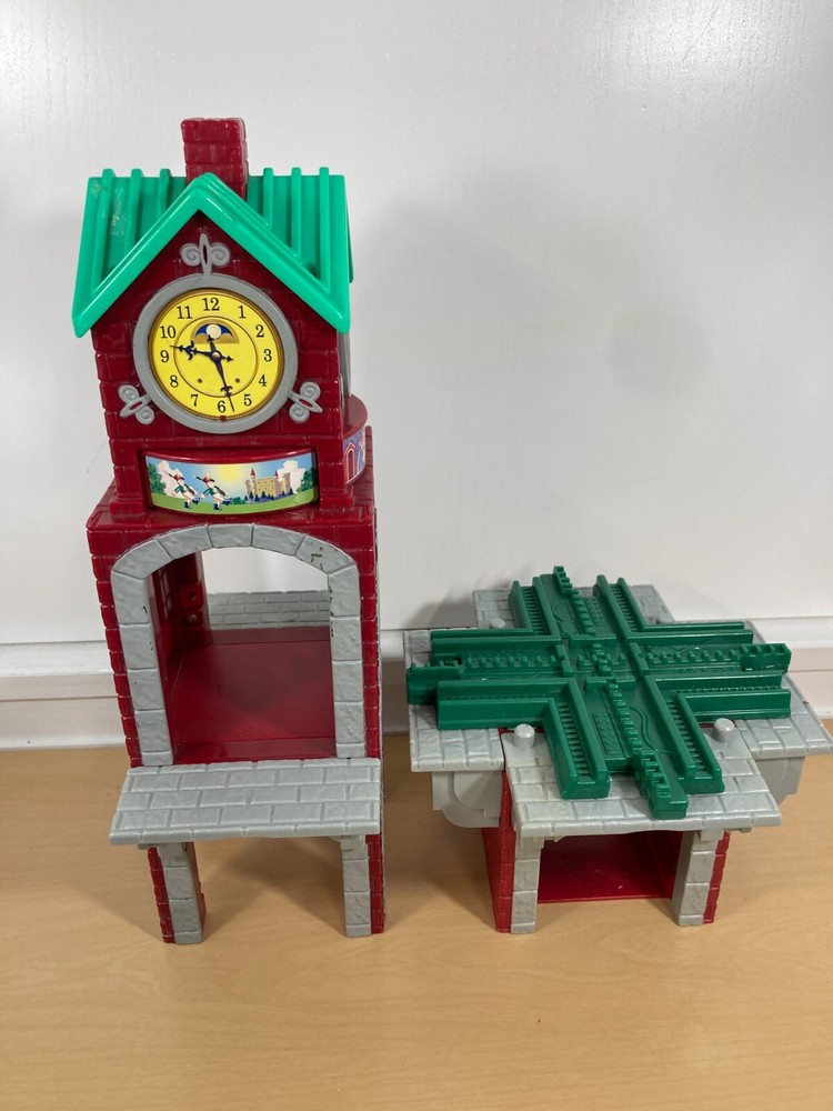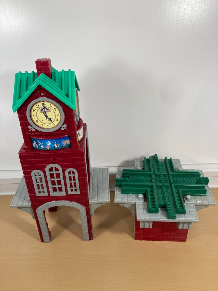 Fisher Price GeoTrax Road and Rail System High Chimes Clock Tower set - 100% Complete - includes: - levels 2 & 3 with tunnels that trigger the GLockenspiel tunes - the base level tunnel The 2 parts can be used separately or together as shown 100% COMPLETE A great add on to your current GeoTrax collection!! Manufacturer's Product Desciption: An exciting new addition to the GeoTrax Rail & Road System, the Elevation Series lets kids take their imaginations to all new heights. The Clock Tower set includes a two-part clock tower that can be used separately or stacked to build up to the 3rd level! Drive the train through the 2nd and 3rd level tunnels and you'll get one of three fun sounds - a clock bell, a clock chime or a Glockenspiel tune! Also includes is a cross track piece, and it can be used with any other items in the GeoTrax System to create an even bigger world. All the toys I sell are in preowned and played with condition unless otherwise noted, and will have minor marks and paint wear consistent with play. However, I do my best to list all items accurately with all major defects or issues called out in the description above. Please look closely at the photos as they are of the item you will receive unless otherwise noted Please look at delivery times as I extend my handling times when I have other projects or obligations, and any extended handling time is part of the listing and assumed to be acknowledged as part of purchase.
