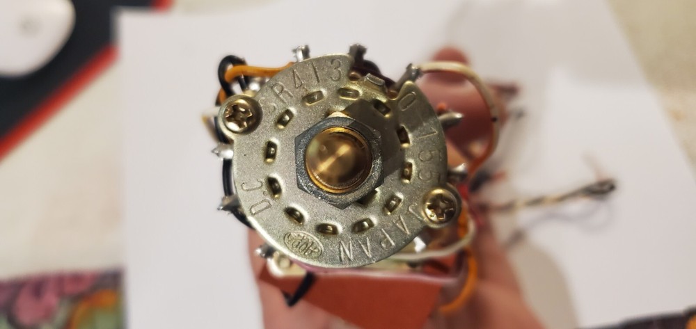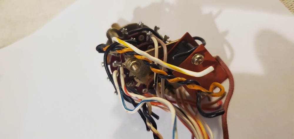 This is the power / speaker selector switch from a vintage Fisher quad receiver Some were branded for SEARS as well. The contacts have been flushed with DeOxit D5 and, where I could reach, polished with an artists pencil eraser