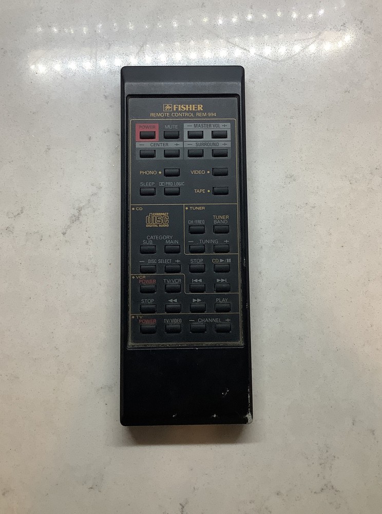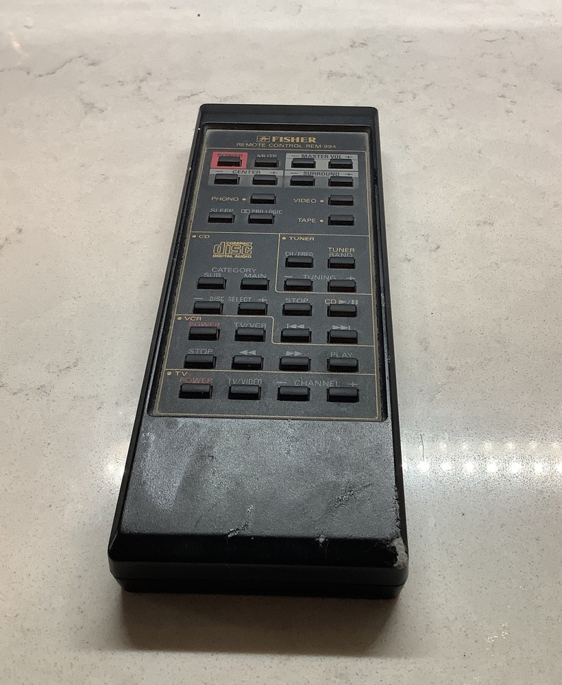 Great Condition This Fisher REM-994 Audio System Remote Control OEM is a must-have for any audio system enthusiast. With its compatibility to work with various devices and its ergonomic design, this remote control is the perfect add-on to your setup. The remote control is made by Fisher in Malaysia and comes with all the necessary features for you to control your audio system. The remote control does not come with batteries, but it is still an excellent investment to make. Whether you are watching movies, listening to music, or just trying to adjust the volume, this remote control makes it easy for you. So, add this Fisher REM-994 Audio System Remote Control OEM to your collection today and take control of your audio system like never before.