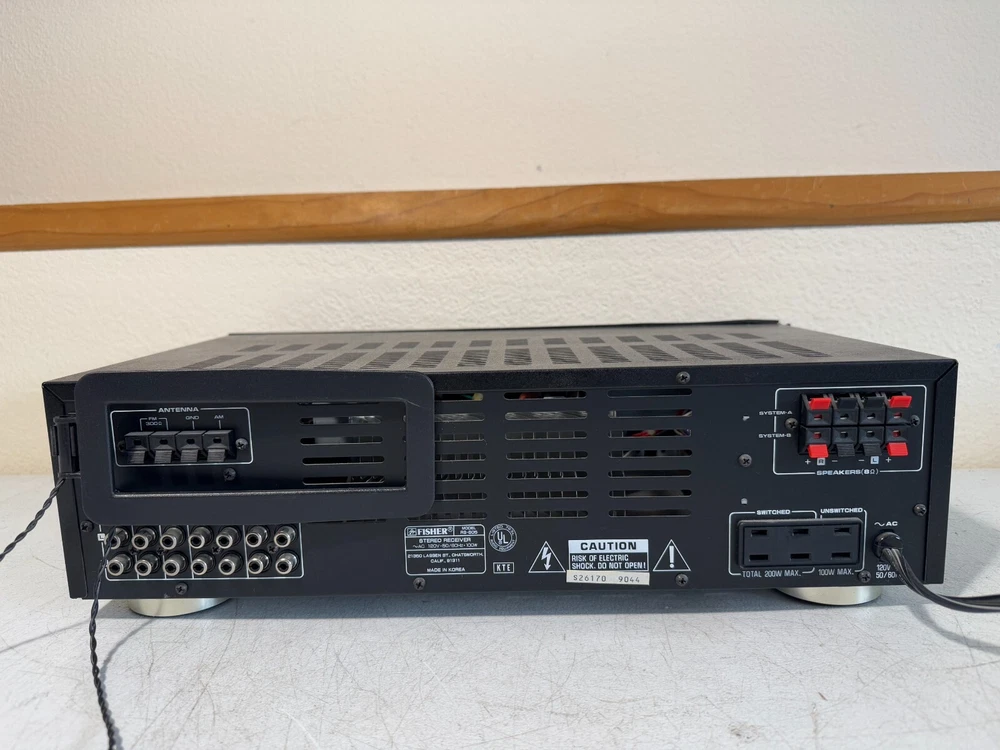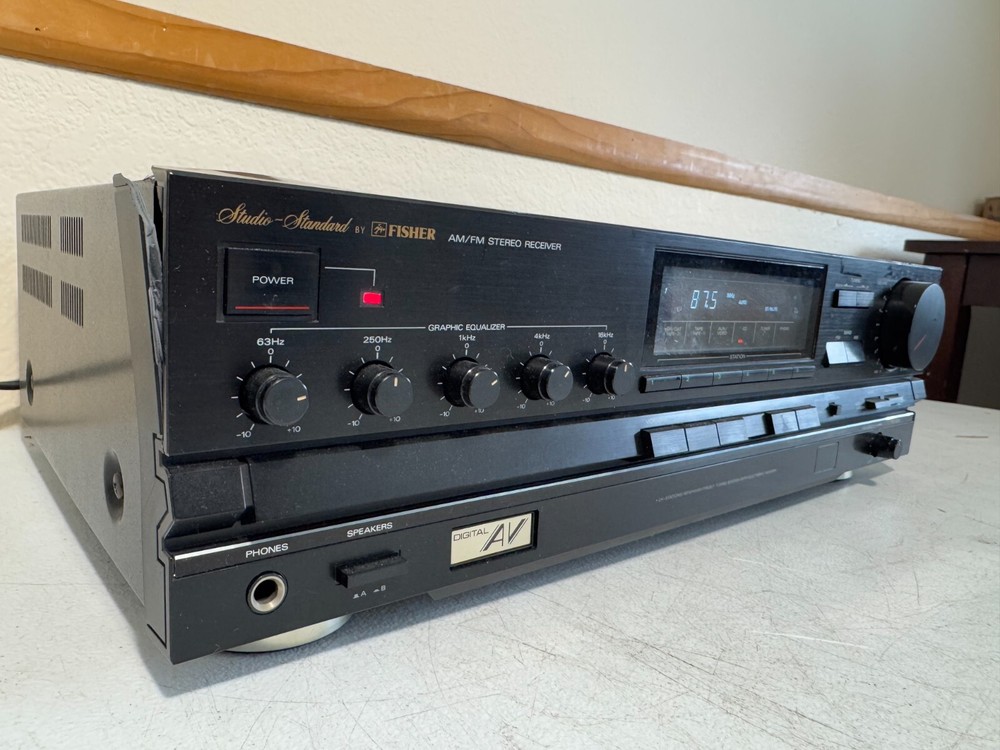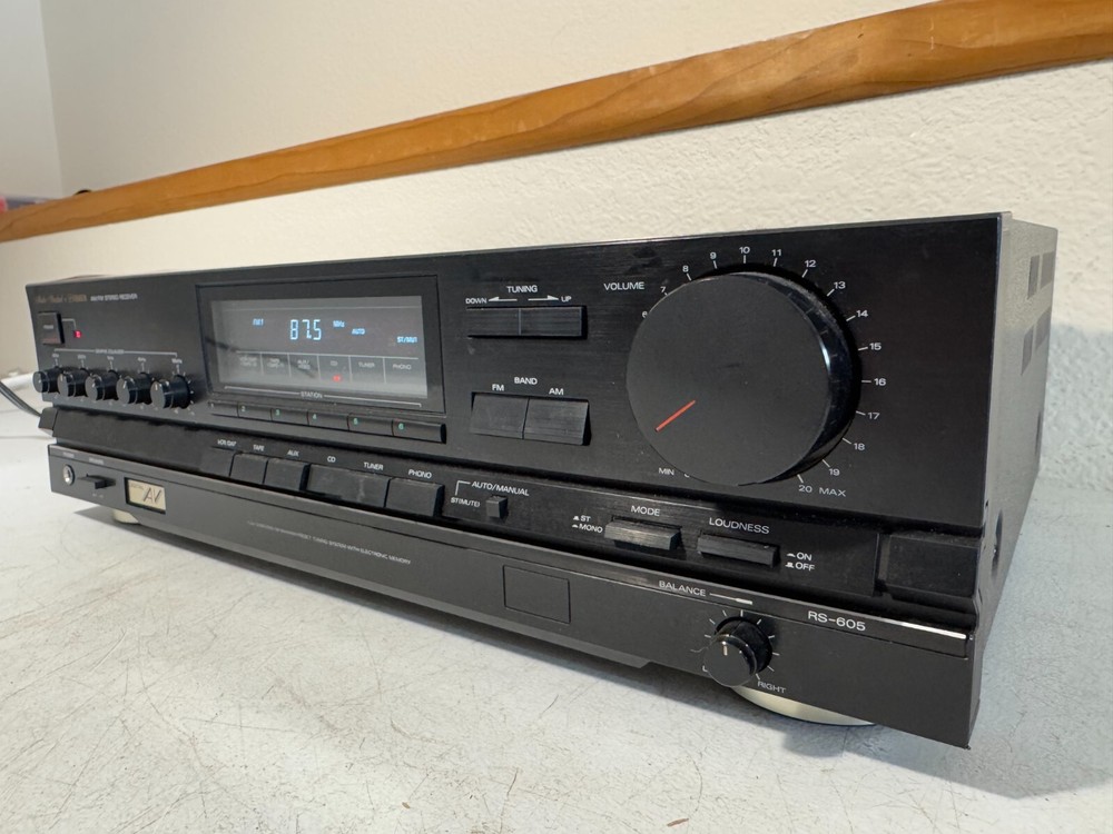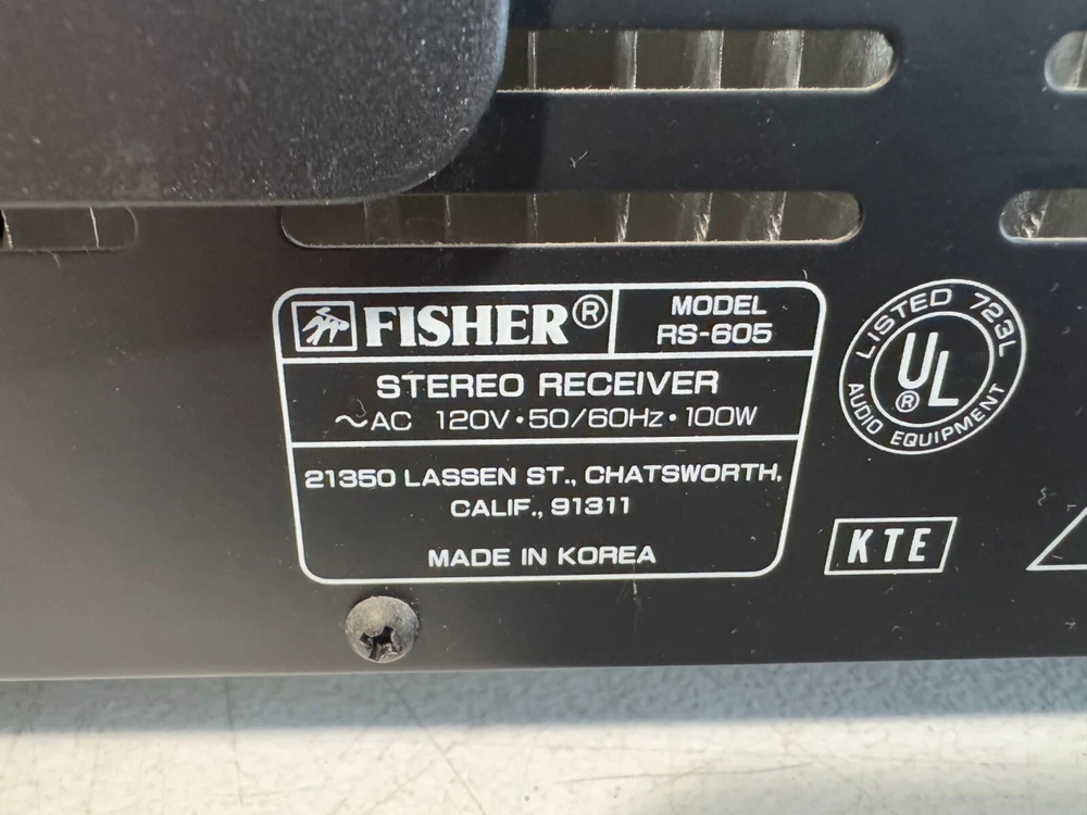 Fisher RS-605 Receiver HiFi Stereo Vintage Home Audio 2 Channel Phono Radio Device is fully working. All channels and functions tested. In good cosmetic condition, but has broken plastic on the side of faceplate as shown in photo. No remote.