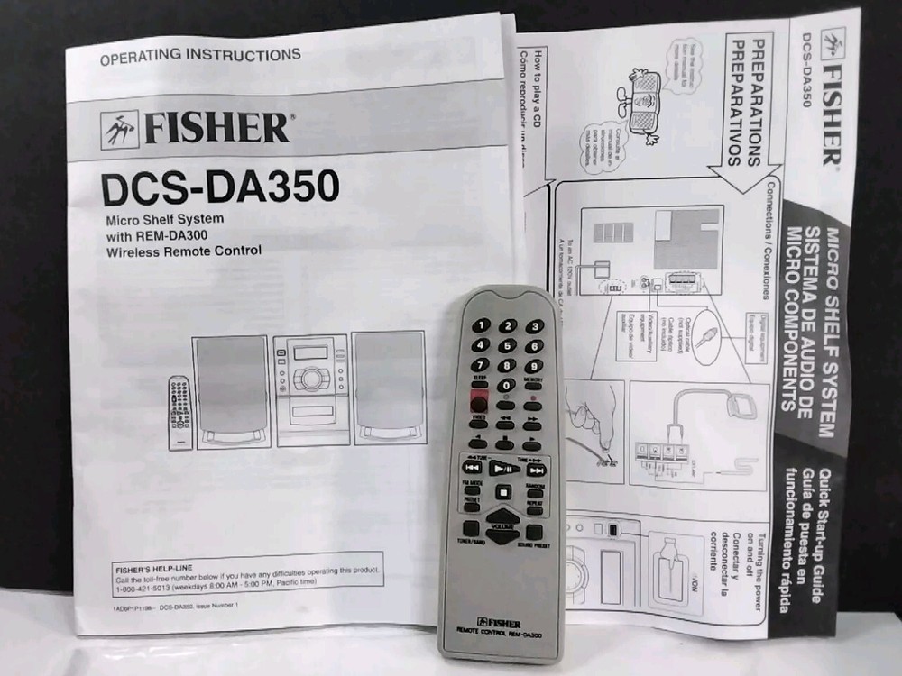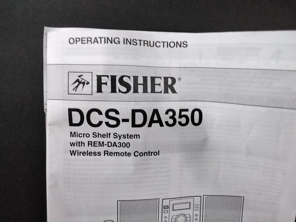 Fisher Remote Control REM-DA300 includes a DCS-DA350 MICRO shelf System Radio CD instruction Manual, how to Setup. Operating instruction manual and remote are in good used condition. Please magnify pics for more details on condition as they are part of condition description.