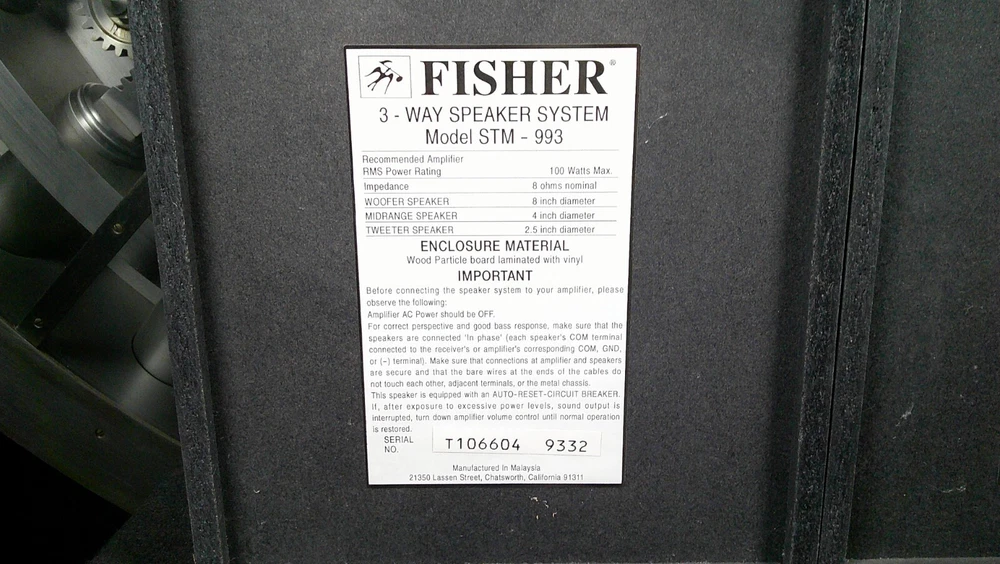 | Seller Notes | “For sale is a Fisher STM-993 3-Way Speaker System Pair in Very Good Condition!” |