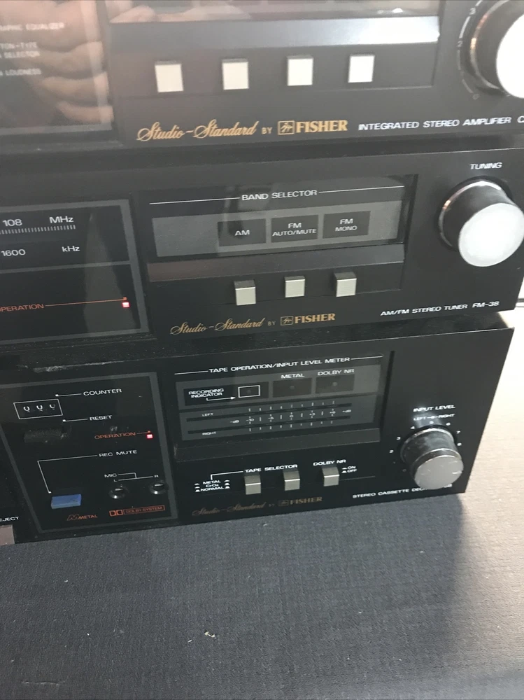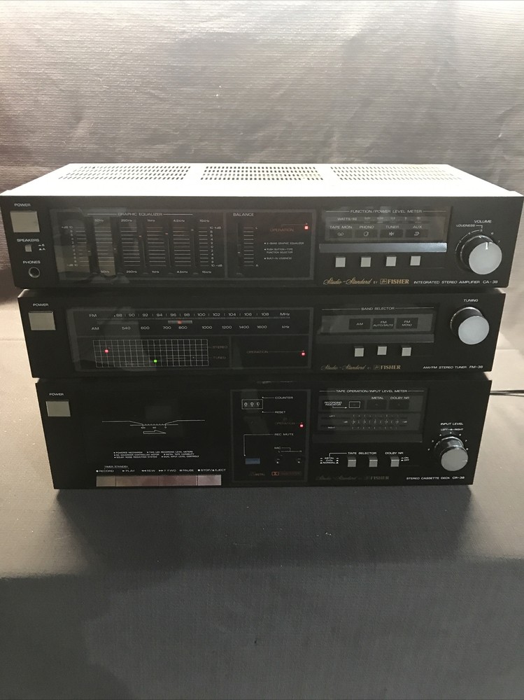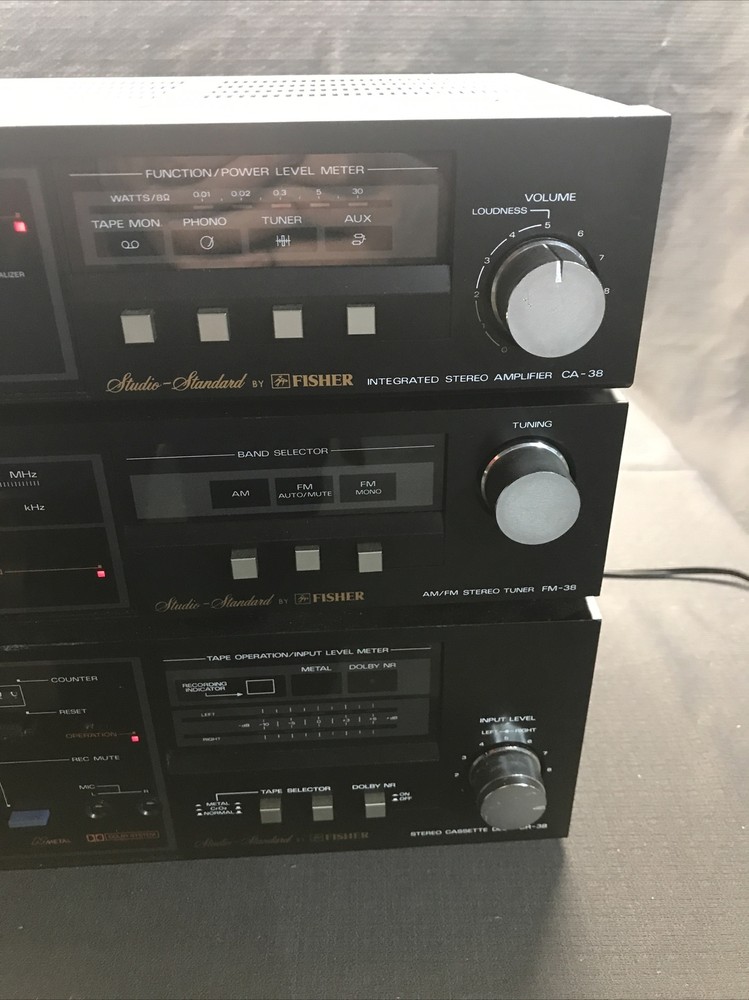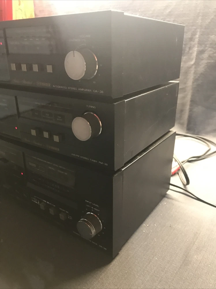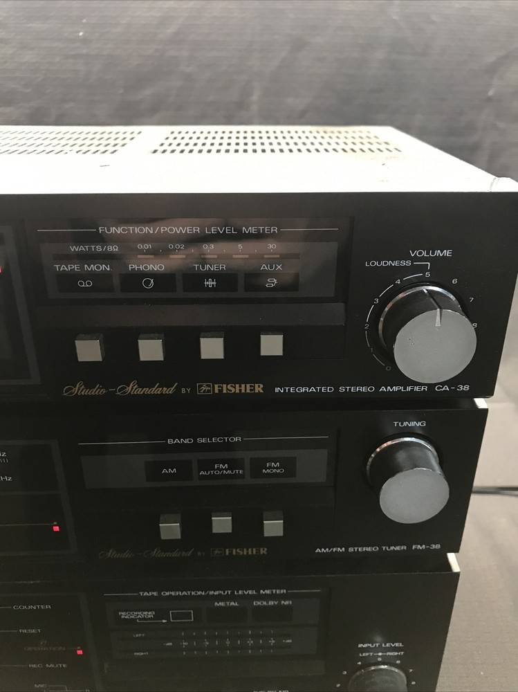 Fisher Stereo Amplifier, Tuner, & Cassette Deck, Needs Belts CR-38, FM-38, CA-38 Tape player possibly needs new belt, otherwise in good used condition, please see pictures for details. Models: Amplifier- CA-38 Tuner- FM-38 Cassette deck- CR-38
