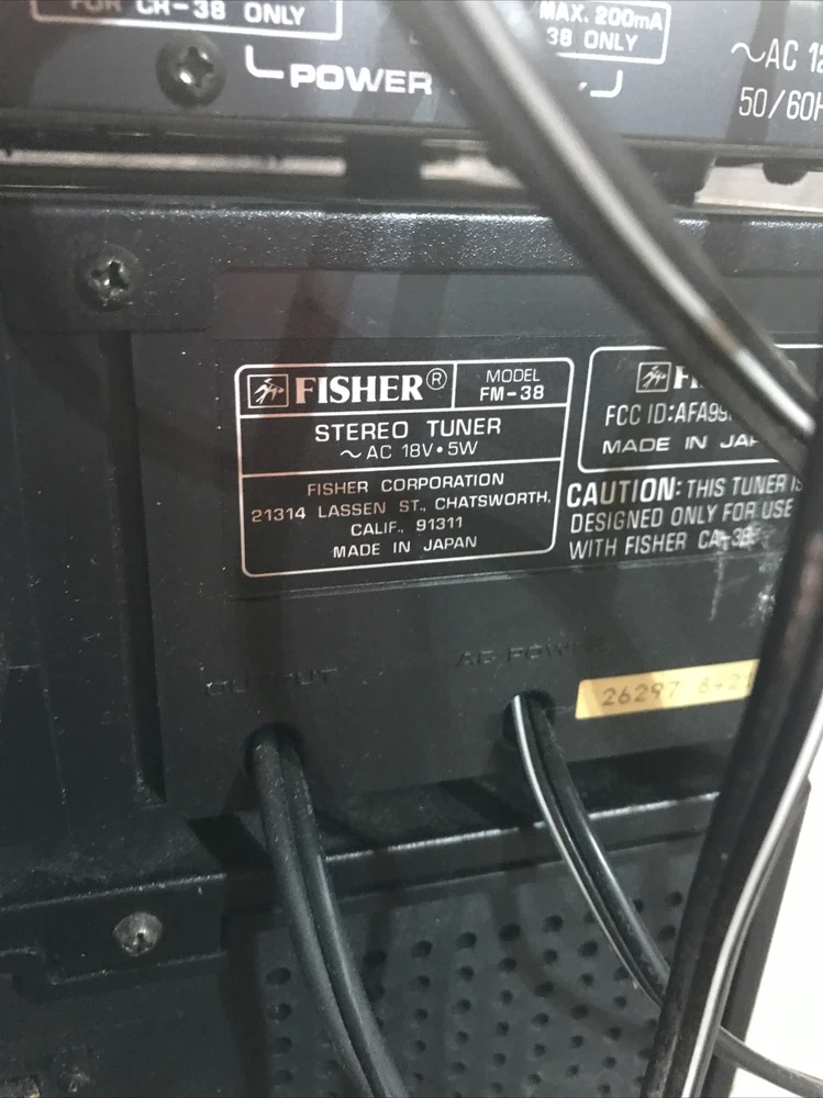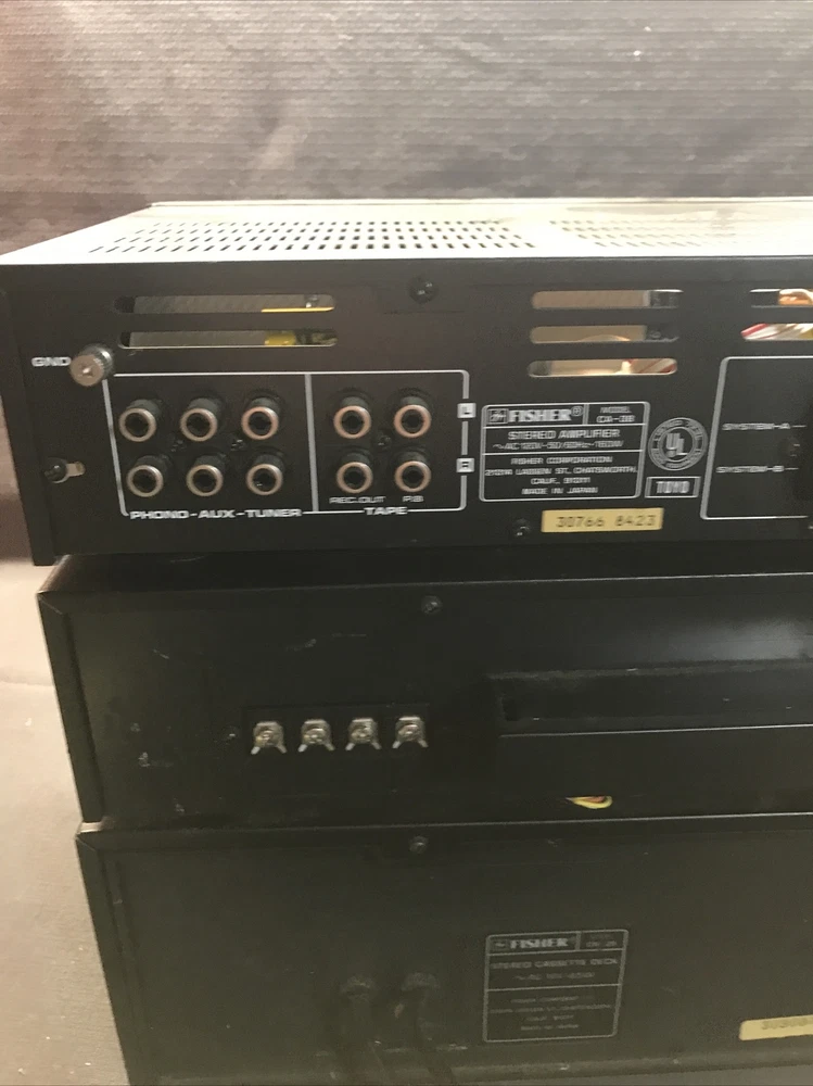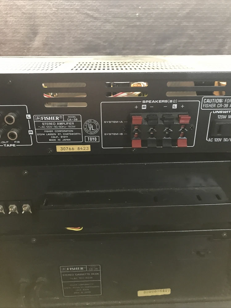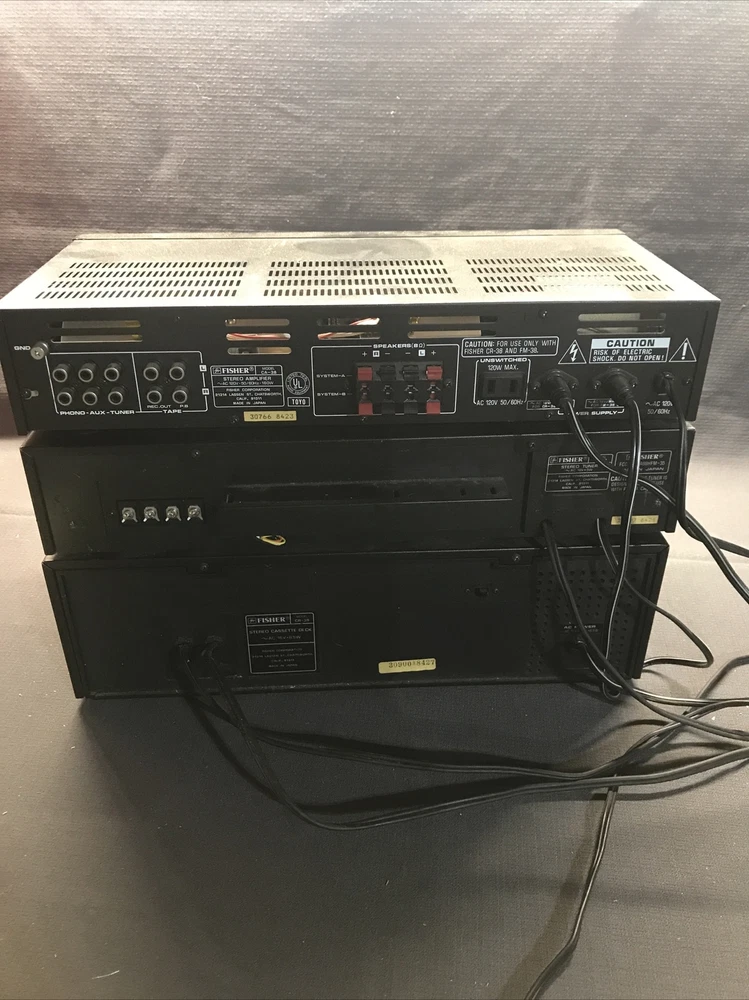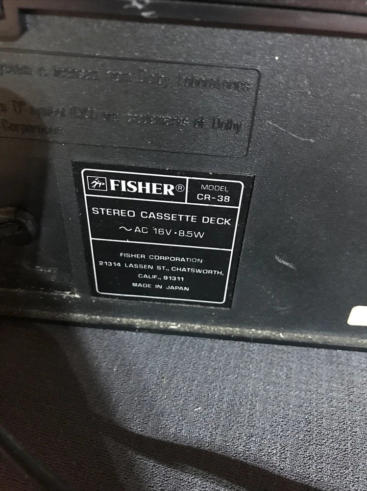 Fisher Stereo Amplifier, Tuner, & Cassette Deck, Needs Belts CR-38, FM-38, CA-38 Tape player possibly needs new belt, otherwise in good used condition, please see pictures for details. Models: Amplifier- CA-38 Tuner- FM-38 Cassette deck- CR-38