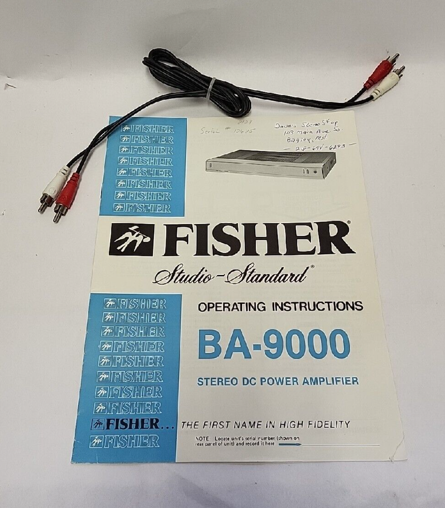 FAST one day handling, This offer includes: Fisher Stereo DC Power Amplifier BA-9000 with owners manual amd RCA cable Actual unit selling shown in pictures. Powers up. Not Tested. Selling as is. No Returns. Comments, questions and offers welcomed! back rack.middle, ab