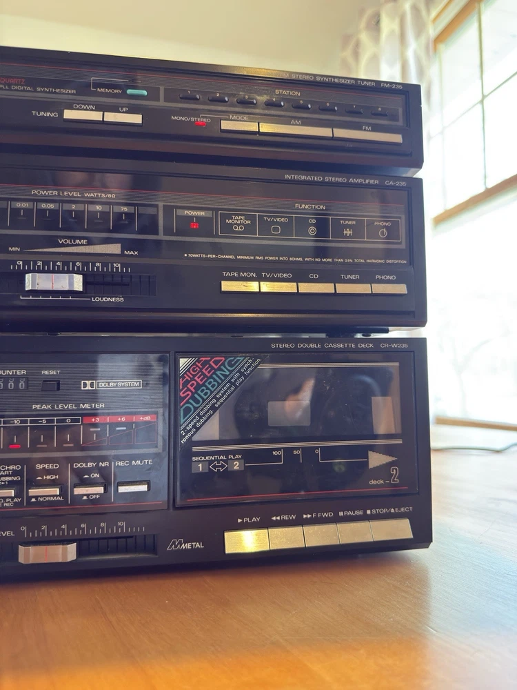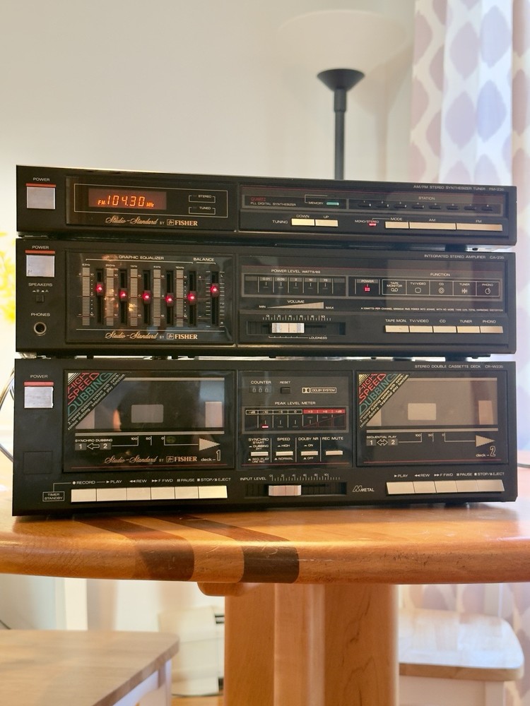 Fisher Studio Standard CA-235 Stereo Vintage Amplifier CR-W235 Stereo Double Cassette Tape Deck FM-235 AM/FM Stereo Synthesizer Tuner A beautiful vintage / retro set. I’ve had this for many years. Tested. Works great.