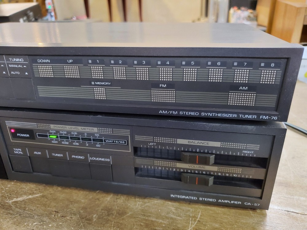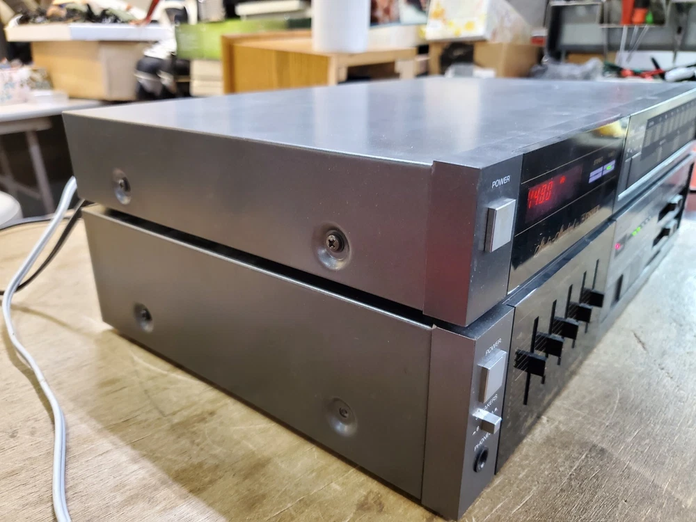 Another item from Ricky Young, Quality Artifacts, Springfield, Vermont. A matched pair, integrated amplifier and tuner The amplifier is working with flaws as follows: the graphic equalizer doesn't seem to be working, and the 250Hz band is erratic in operation, maxing out volume if pushed to the top; there is occasional distortion in the balance and volume when adjusting (it is very slight) but not when left alone; and the loudness control only has a slight impact on the sound when actuated (that may be normal, it is hard to know). Sound is good when the amplifier is set and not being adjusted, so this amp can be used as it is. The tuner and aux inputs were tested as good. We didn't test Phono and Tape Monitor. You may want to have this amp serviced to ensure full and smooth operation. The tuner passed all our tests and appears to be working properly. It has a good antenna on the back. The tuner matches the amplifier cosmetically and it has the interconnecting power cord attached to supply power to it from the amplifier. We are also including the patch cord shown. You can use the amplifier on its own without the tuner. You can also use the tuner with another system if you replace the power cord with one with a standard 120V plug on the end. Physical condition of each unit is very good, with just a scratch to the top of the amplifier as shown, plus other normal signs of age and handling. 15-3/4" wide x 11" deep x 5-1/4" high overall, the amplifier is 3" high by itself. The tuner is rare and very hard to find. Unpacked weight & size: 17.45, 16x11x5 Packed weight & size: 21, 20x14x8 Package Notes & Ref: 5A106 : Note: Unless specifically indicated otherwise, the shipping charge quoted is to addresses in the contiguous 48 United States. Please email for a shipping quote to Alaska, Hawaii, US territories, and international destinations. This particularly applies if the shipping charge is zero ($0). : Please also note that my liability for product defects is limited to the purchase price plus shipping. I am not responsible for the installation, training in the use of, or operation of any item I sell. The buyer assumes all responsibility for safely handling, inspecting and verifying the operational quality of their purchases prior to putting them into service. The buyer expressly releases the seller from any liability arising from the installation or operation of the product. : We appreciate your business. Our Standard Shipping method is our choice of USPS, FedEx or Motor Freight. Unfortunately, because we have very limited space, we cannot store your purchased items for you. For local pickup, we can hold your item for two weeks (or as agreed upon beforehand in writing) from the purchase date, after which we have to charge storage, up to $10 per day, depending on the situation. Once storage fees exceed any moneys paid, we will have to relist the item without refund.