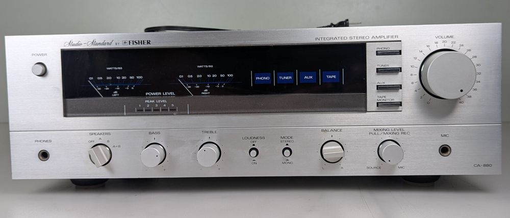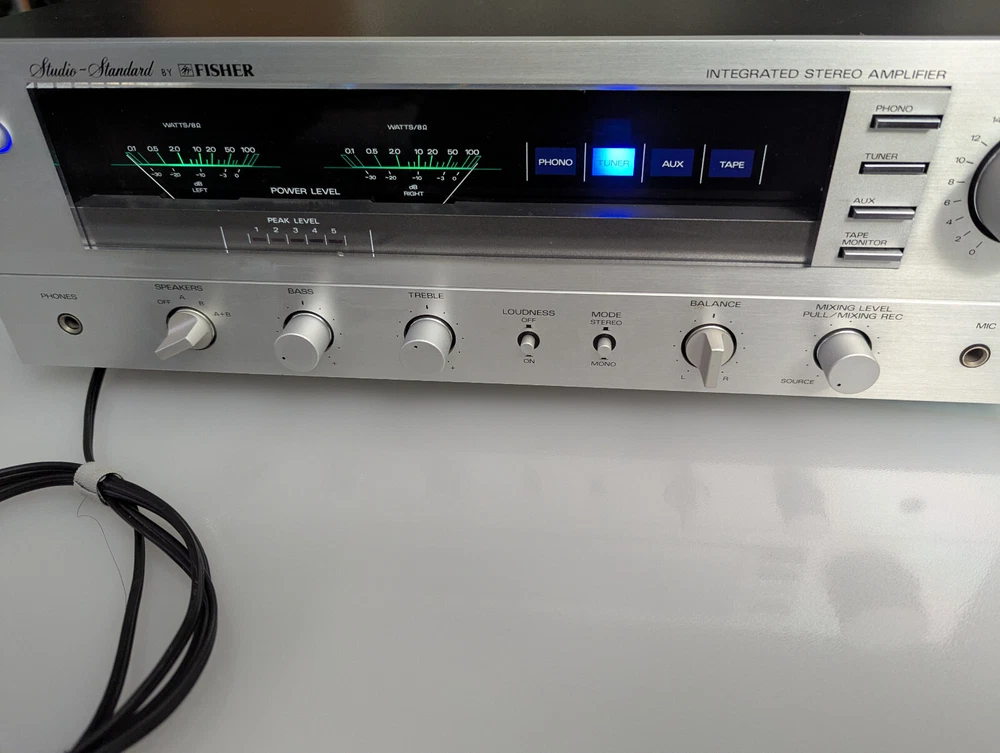 Beautiful and solid receiver, overall in great condition, unfortunately, is not 100% functional. All of the inputs work, the sound comes through one channel only the second one is distorted it needs to be fix. One meter needs attention as well as you can see in the Video. I was told by the previous owner that he replaced the lighting on the inside for LED so it does not have the original Selling as-is It will come exactly as shown, so please see the photos! Please see all pictures and use the zoom feature. Often the pictures describe the item better than words.!