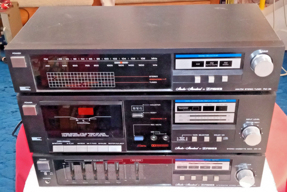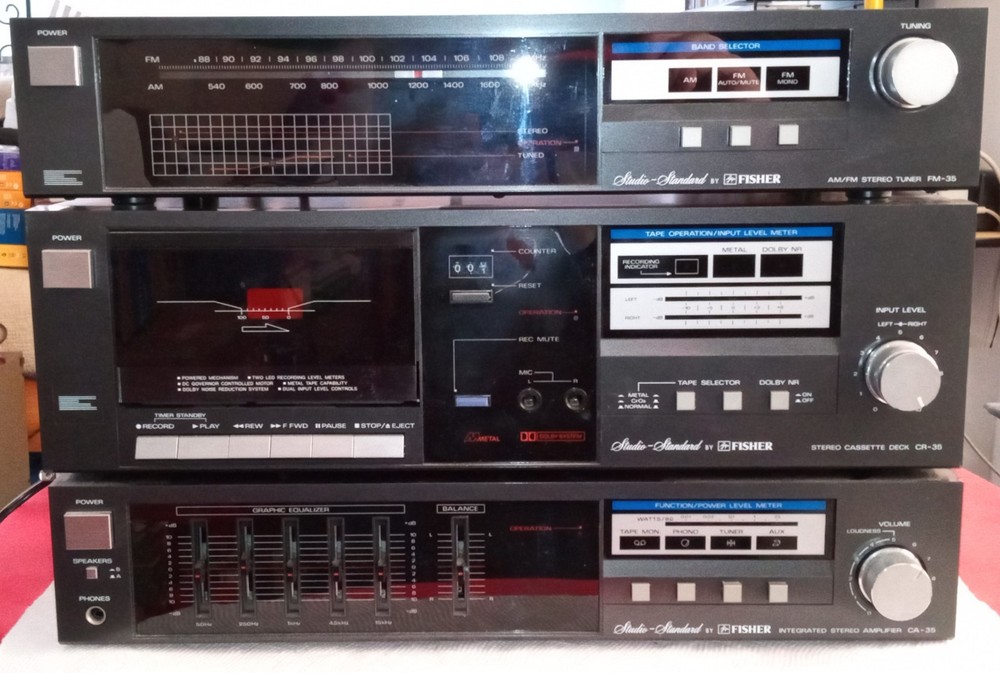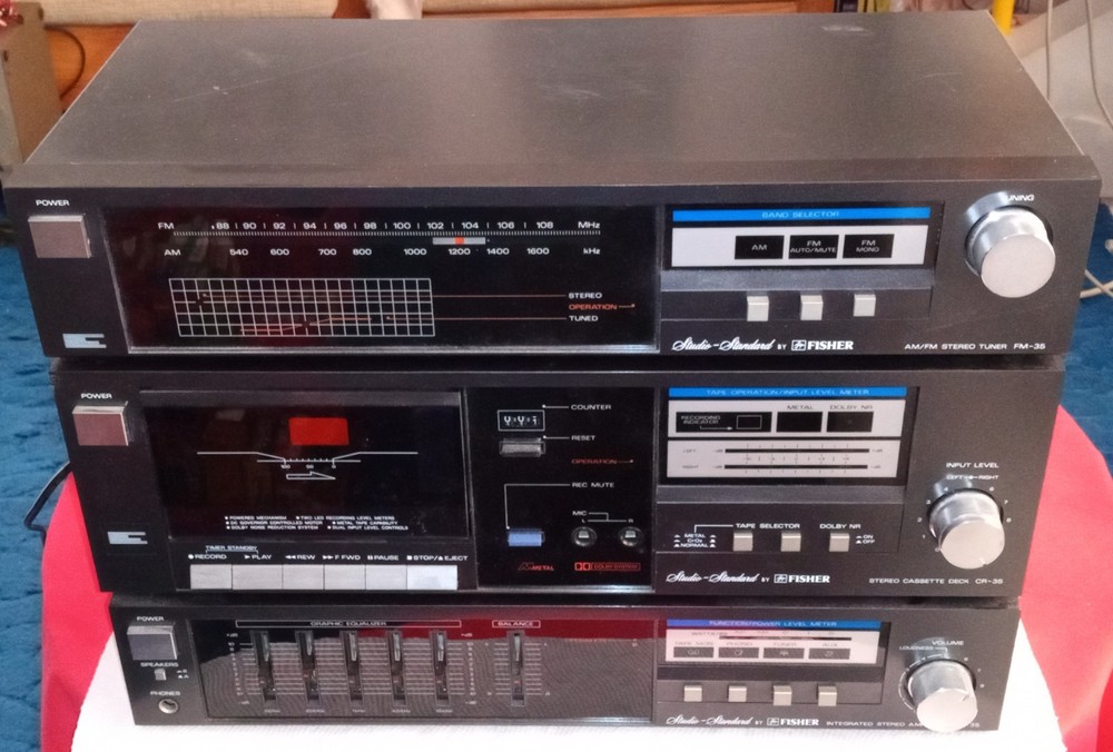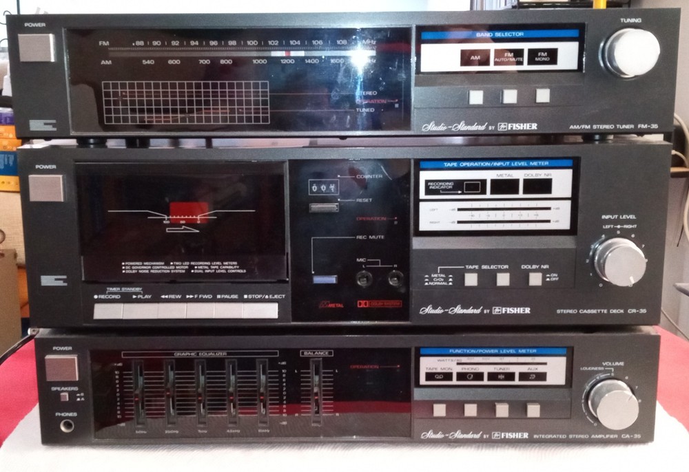 Fisher Studio Standard integrated system; FM-35 stereo tuner, CA-35 amplifier, CR-35 cassette tape recorder/player. Quality vintage Size: 16 x 11 x 9.5 in Weight: 16.82 lbs