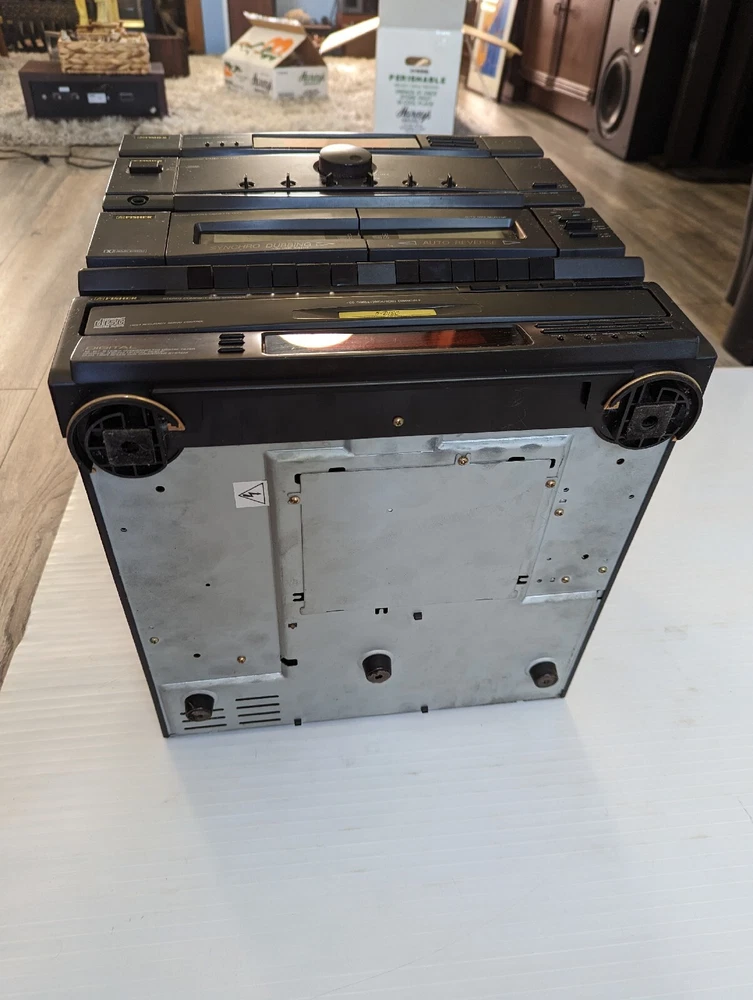 The item is sold as is, not working, for parts or repair only. The unit powers up, CD deck throws E code and does not function at all. Cassette decks work (recording is not tested). Radio works. It shows normal cosmetic wear, there are some scratches, writing on the back. There are no other accessories included. Please accept that the item is sold as seen and shown in the photographs, so, please look over them carefully. Feel free to contact us with any questions regarding this item. If you are satisfied with your purchase, please leave feedback. If there is a problem, please let us know and we will correct it to your satisfaction. Returns accepted of items shipped back in original, unaltered condition.