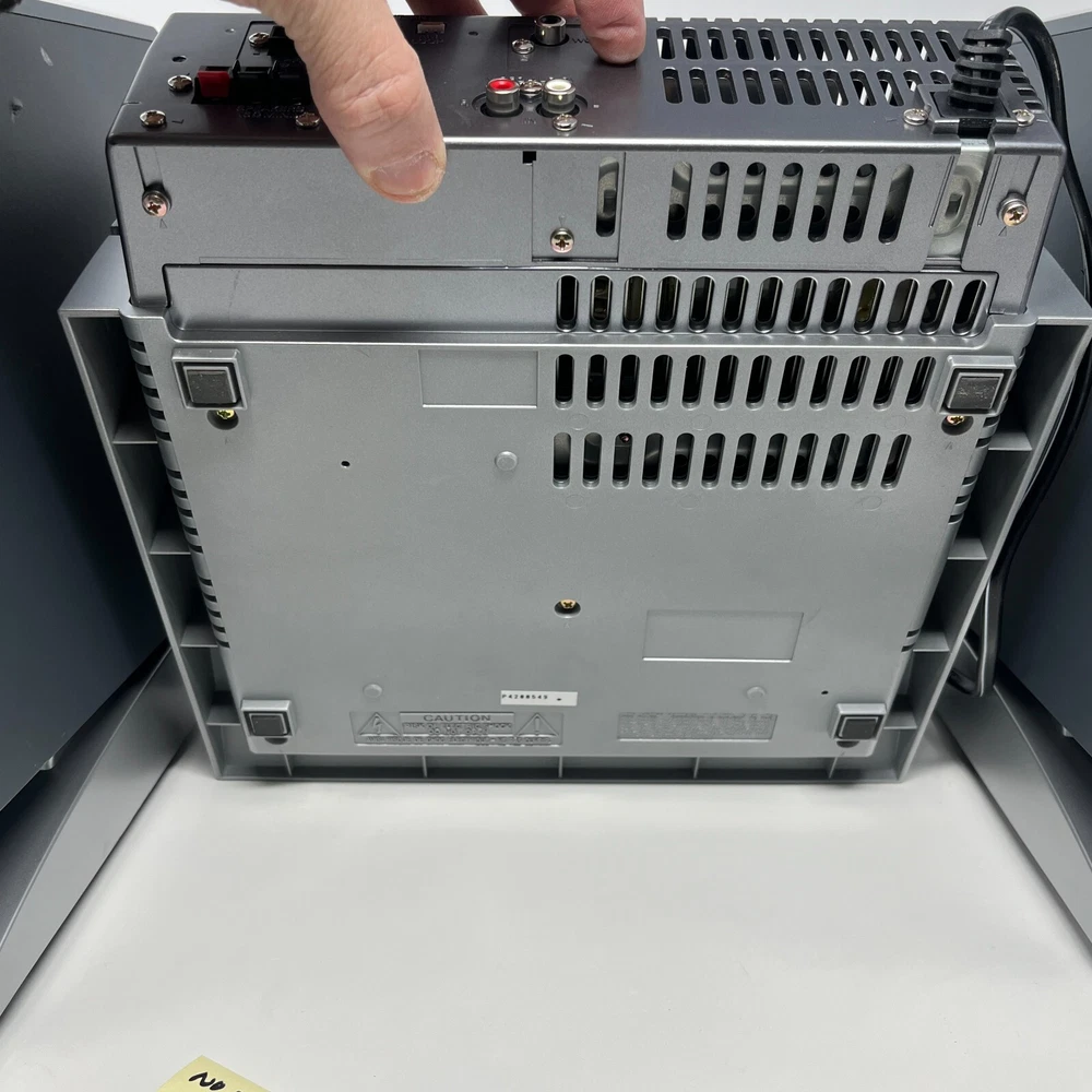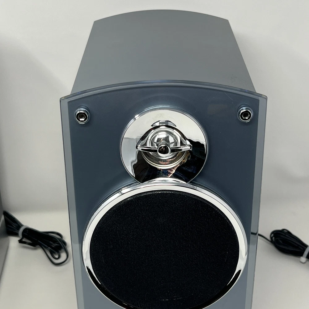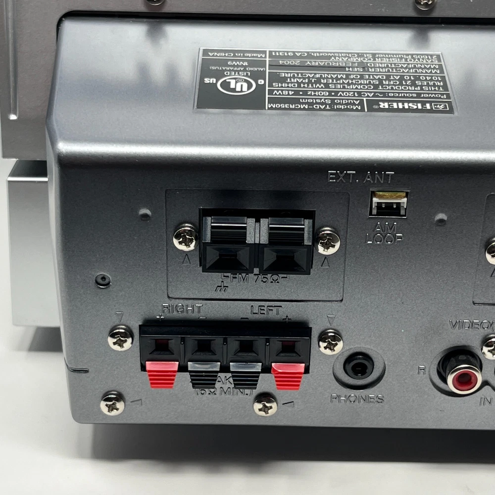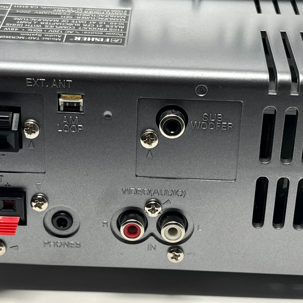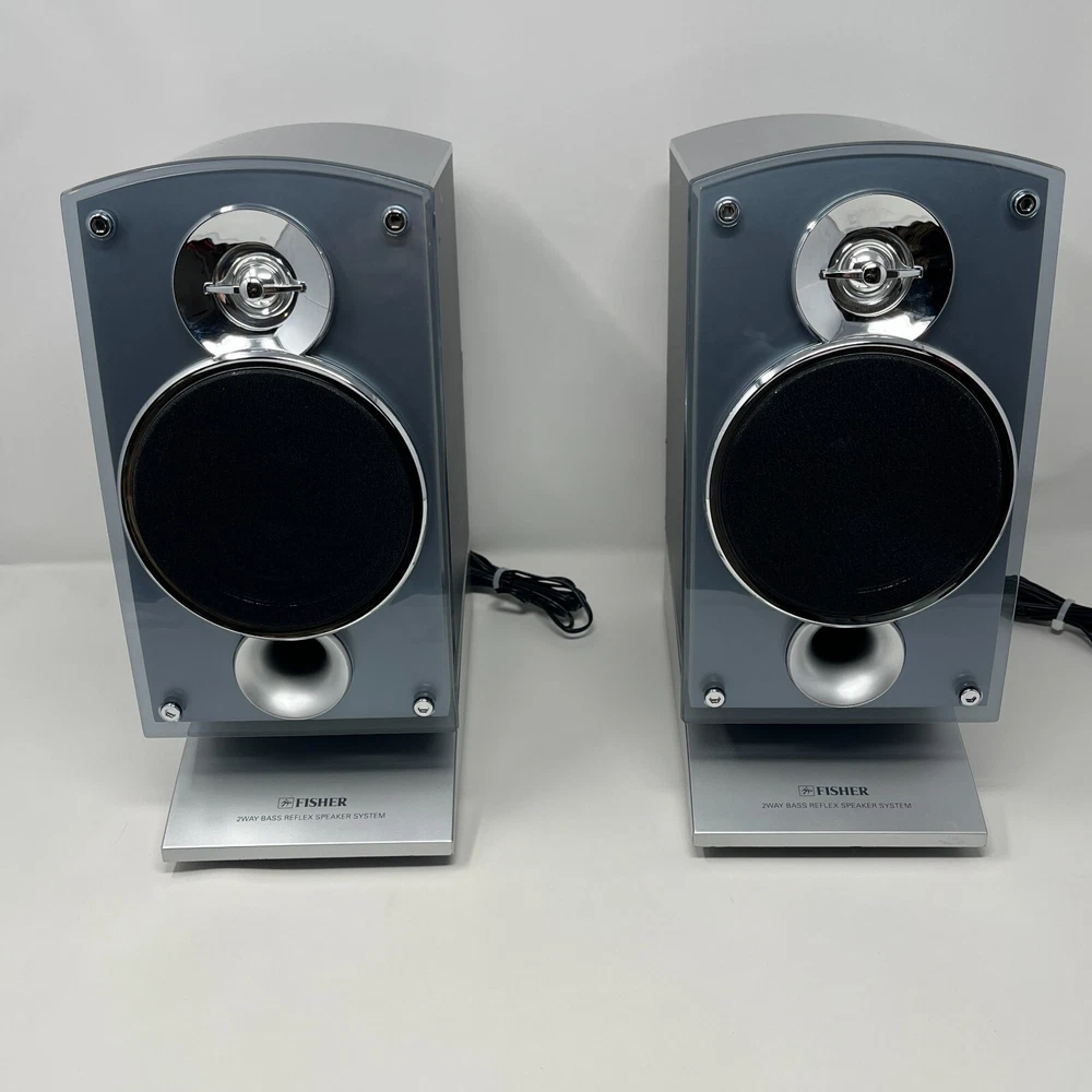 Fisher Audio System Model TAD-MCR350M TESTED working - 2 speakers and speaker wires - main unit with attached power cord - CD player - TAPE player - RGB LED lighting effects - motorized open/close SEE VIDEO Sounds great, has a few minor scrapes but overall is in great condition. Played both CD and TAPE and all functions worked. The is a RARE, COLLECTIBLE & MODERN micro system The COOL FACTOR on this unit is very high. WHen power off the LED lights go into a subtle slow color mode. The unit does not open while playing and during initial bootup sequence. During testing we found best operation to be: 1) press mode of operation: CD or TAPE 2) then press OPEN/CLOSE button There is also AM/FM radio as well. The LED display is readable but is somewhat dim, and at the angle of the unit, which can help or hinder visiblity. But is readable looking directly from above. Just setting expectations. I don't think the dimness is anything but OEM, but view before buying. There may be a setting to raise/lower brightness -- this was next checked or tested due to time limitations. No instructions. No original box. No Remote Control.