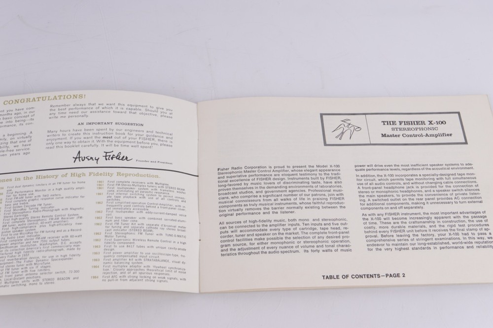 Fisher X-100 Master-Control Amplifier Operating Instructions and Warranty. Nice to have to go with your amplifier. Original, not reproduction. Shows only light general wear. Buyer pays $5 shipping in ...
