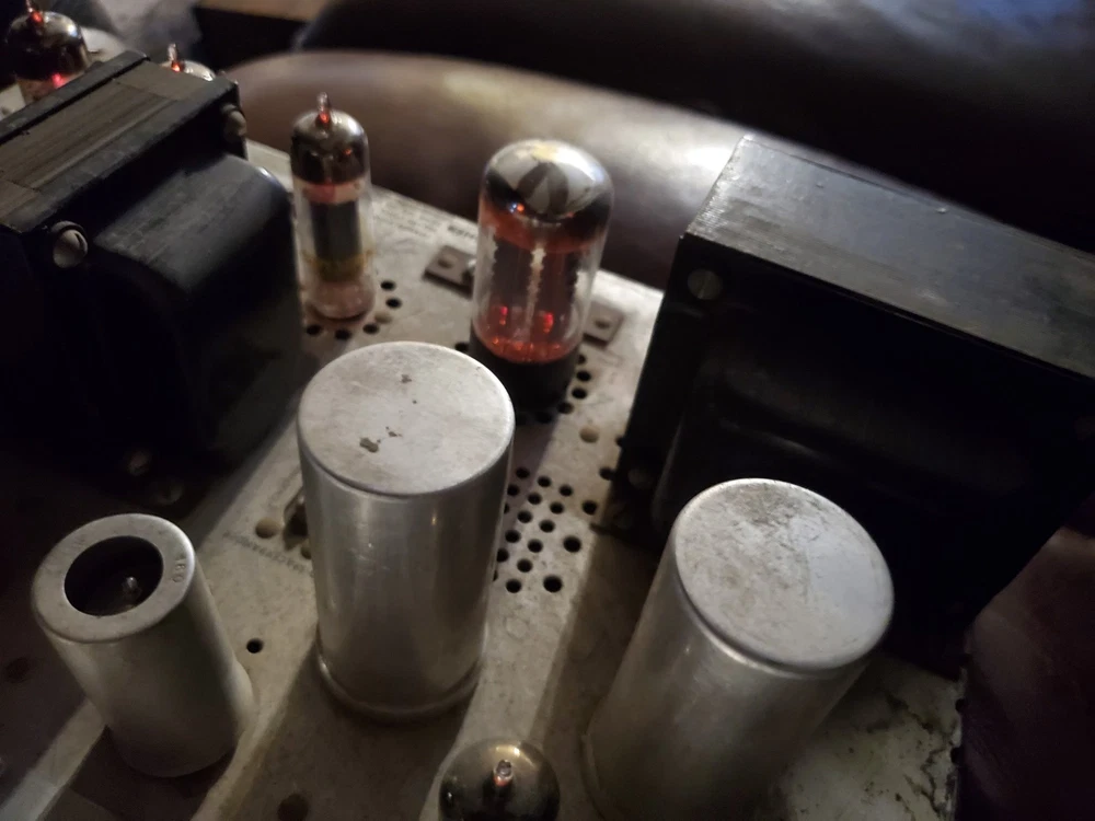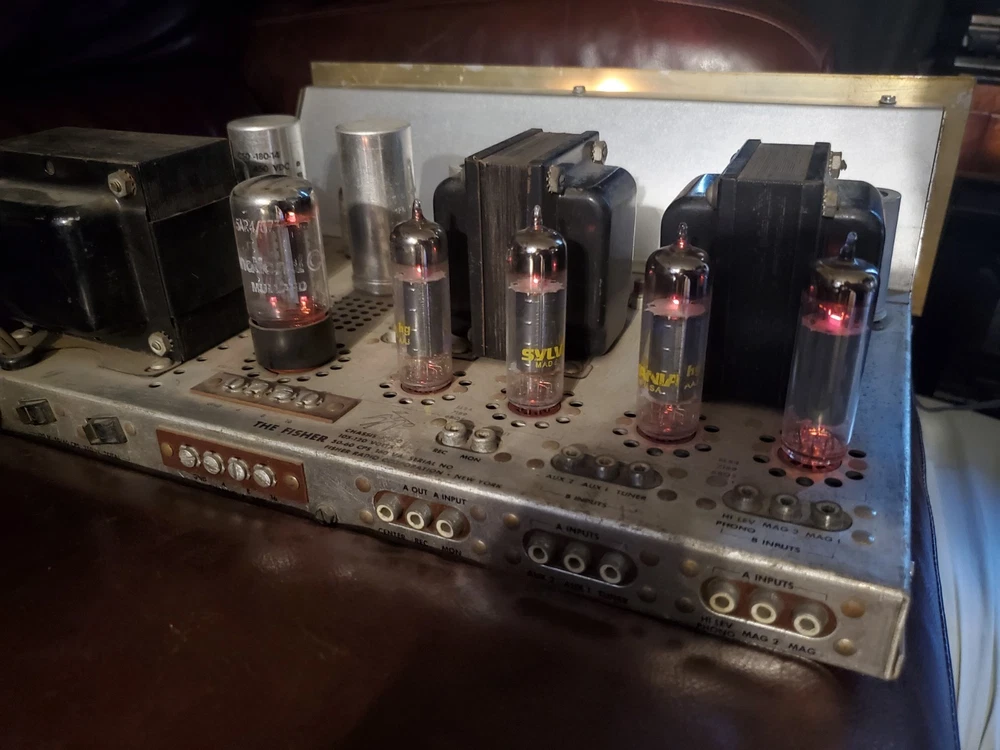 this unit is an oldie but a goodie. I don't believe it's been refurbished recently but I tested it and both channels are putting out good sound. There's a couple dials or switches that make the sound scratchy when adjusting while music is playing but nothing too serious. Overall, it shows its age somewhat but in better condition than most. This unit doesn't come with the cabinet