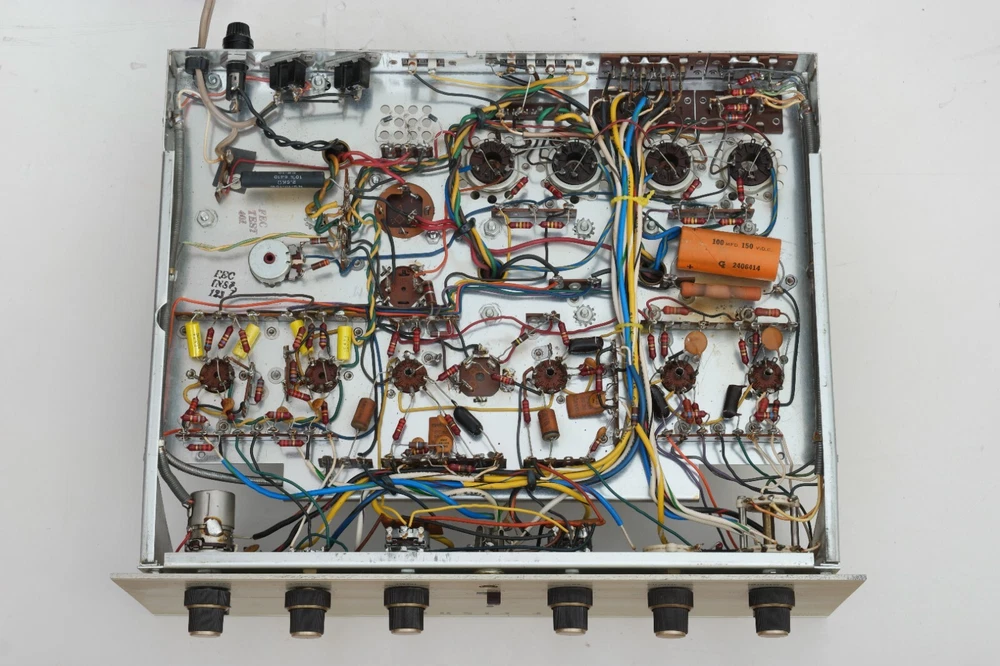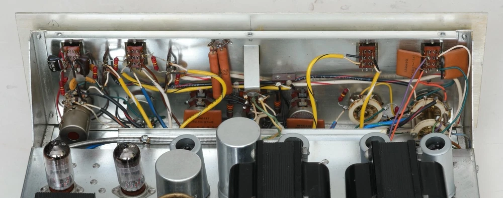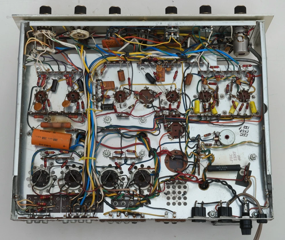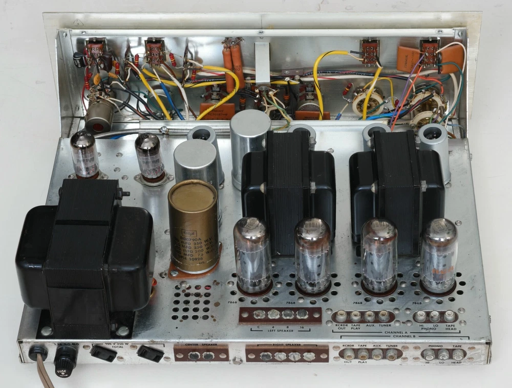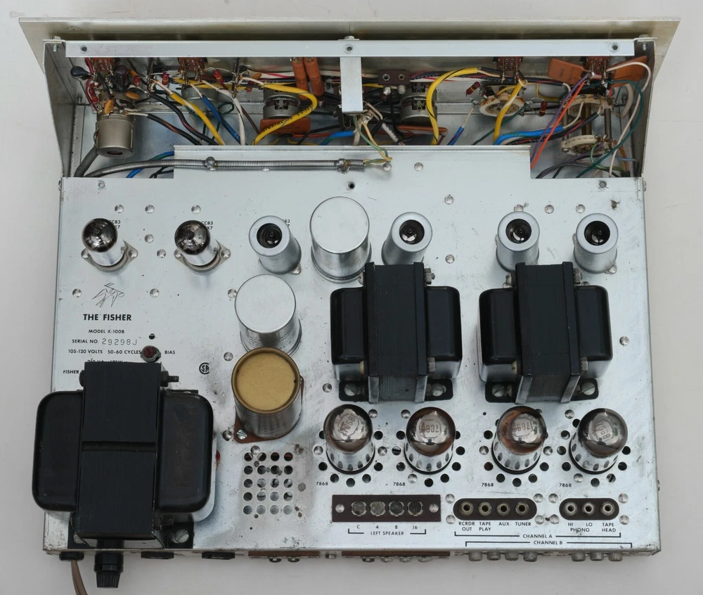 Fisher X-100-B Stereo Master Control Amplifier Good Working Condition!!! Up for sale is a good working order Fisher X-100-B Stereo Master Control Amplifier . As the photos show, this is in good condition for its age. It has scratches and nicks. Jewel for lamp is missing. Perhaps the previous owner replaced one of the can capacitors and some of the signal line capacitors and silicon diodes. I tested tubes on my TV7B/U tube tester. 1. ECC83/12AX7A : New Sovtek 12AX7WXT+ ( Triple Mica, Minimum is 32/32. ) - Results : 62/62, 62/63, 61/63, 63/62, 62/59, 66/66 2 . 7868 : RCA ( Minimum is 42. ), Matched Quad - Results : 71/72/74/74 Please look at all the pictures for an over all condition, before bidding. All items are offered for sale locally therefore listings may end without notice ( CraigsList-Princeton ). What you see is exactly what you get. Please see the photos for condition details and judge for yourself. All items are sold in the condition shown in photos and "as is" condition, with no warranties. If you have any questions please email me. No returns please! Shipping to Continental United States Only (48 States). Thank You for looking, and good luck with your bids!!!