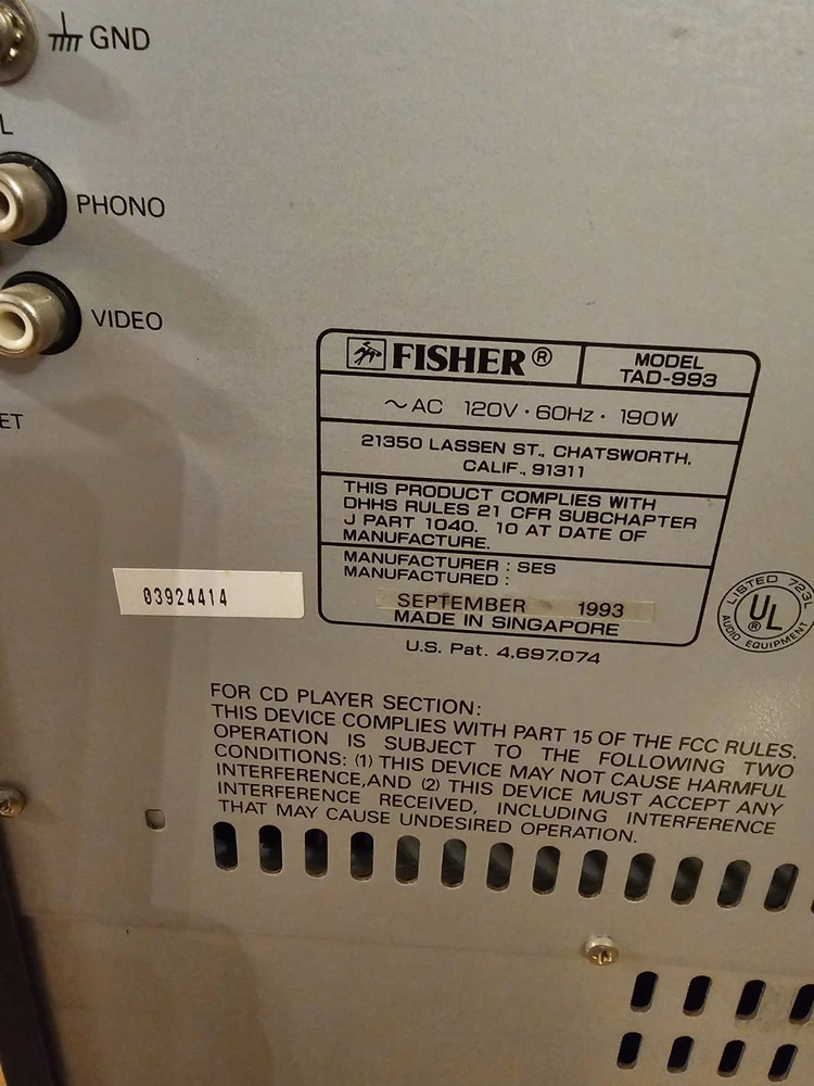 The Fisher TAD 993 Stereo System is a vintage home audio device from 1993 that includes a CD player, cassette tape player, and AM/FM radio. This compact and shelf stereo, manufactured in Singapore, features a black color design and a range of features to enhance your listening experience. With the brand's reputation for quality and reliability, this stereo system is a great addition for those looking to enjoy their favorite music in a variety of formats.