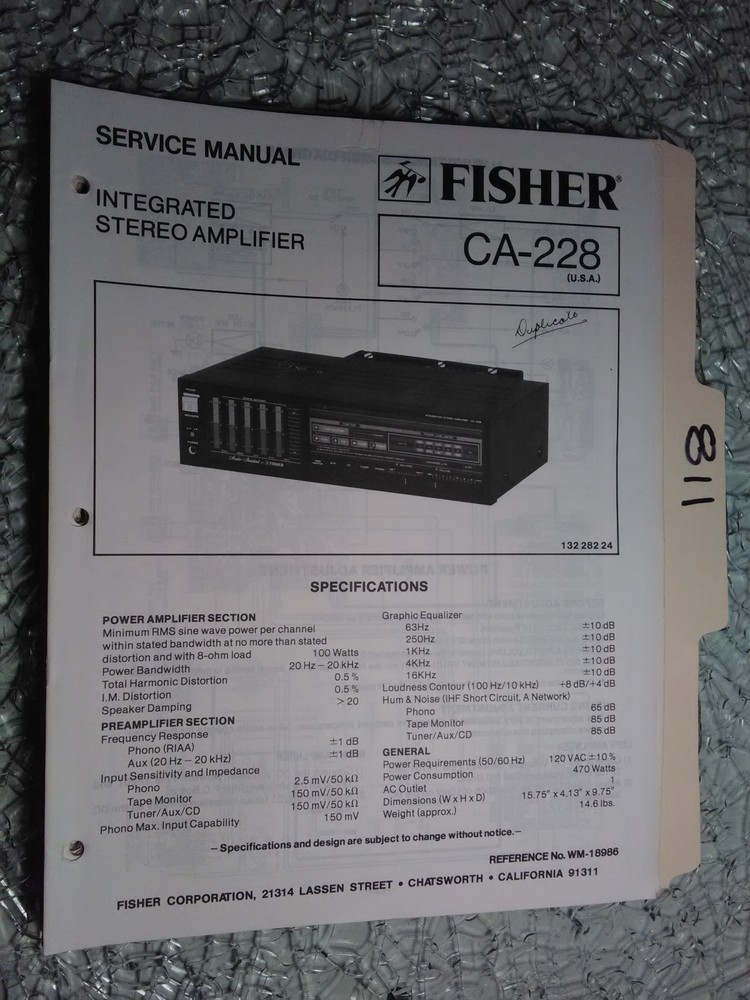 Fisher CA-228 Stereo Amplifier Service Manual Original Repair Guide