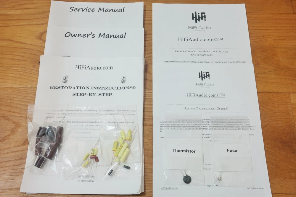 This listing is for 1 x FULL kit for x100 amp. ---------- The scarcity of good, honest techs who can do a good and reasonably priced restoration/rebuild of audio equipment (especially tube gear) made me start offering this restoration kit. In today's day and age it is very hard to come by a knowledgeable tech who can service your audio gear well. I have seen many poor quality restoration of equipment that cost way too much to its owners. In 99% of the cases there were only few parts replaced, instead of a full and proper restoration job. On the other hand, if one succeeded in finding a good tech, a wait time is usually 6-12 months for the unit to be serviced. In this kit I offer parts and instructions for a full/complete restoration of your audio equipment. I have been servicing audio equipment for many years and have developed deep respect toward all good equipment, especially tube gear. I really do think they sound amazing if properly restored. I have seen many bad quality restorations/fix jobs done to these units that made them sound cheap and very low quality. Knowing how amazing and warm these units can sound, I have decided to develop this kit to help you do a great job on your equipment. It includes very good upgrades and improvements that MUST be done to the unit. Please do your audio equipment a favor and replace the most important components that are most likely 90% dead. Power / Filter stage caps are those large silver cans mounted on top of the chassis and sometimes underneath. This restoration pack will make a huge difference in the sound quality. All the parts are of high quality Japanese Nichicon / Nippon / IC / United Chemi capacitors. I provide several instructions on how to mount those new electrolytic caps. The best one is to rebuild those original cans. You will receive a step-by-step instructions and all the proper caps needed for that. This technique will keep the original look of the unit. I am extremely particular about the quality of the parts provided with this kit. Knowing how many bogus/fake caps, diodes, resistors etc. out there, I source all the parts from reputable whole-sellers and buy them in bulk. The knowledge that I am going to share with you have been acquired by me over many years serving audio equipment. Please be patient and let’s get your little birdy sing again. “They Shall Have Music” Avery Fisher Included in this kit: 1. Power/Filter stage upgrade with authentic Nichicon / Nippon / IC / United Chemi electrolytic capacitors. 2. Detailed instruction with colorful images, schematics, manuals (all of these are in electronic form, I consider these much better than printed version due to zoom availability). 3. Schematics 4. Complete audio path upgrade with high quality US made (IC) or Nippon audio grade film capacitors. 5. Parts for compete recap of all the electrolytic capacitors. 6. Complete recap of all lytic, film, oil, paper caps. 7. Diodes. 8. Inrush thermistor (to limit the initial current inflow). 9. Bridge rectifier. 10. Transistors (PNP, NPN). 11. LED dial and indicator bulbs 12. 1 x main fuse 13. Instructions on how to clean the chassis. 14. Instructions on how to clean a faceplate 15. Instructions on how to polish knob covers. 16. Support/help to a reasonable extend in case you need it. (This is what makes us different from other sellers.) -------- Also available NEW production volume control -----------> LINK After you place an order please follow up and let us know what Fisher model you are restoring so we send you a proper kit! We may also be interested in purchasing your equipment. PCBs. requires a full recap of all the PCBs.