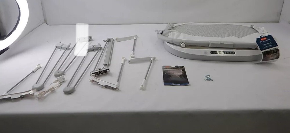 New without box 1. Stationary bedside bassinet with built-in sound detection and customizable lights, music, white noise and vibrations controllable from a smart device with the free Smart Connect app 2. Smart Sensing System detects and responds to your baby’s cries with 3 soothing options. Each response mode features music & sounds, including the 20-minute Ready, Settle, Sleep playlist 3. Select an auto shut-off timer (up to 2 hrs) or continuous play with volume control and 3 levels of vibrations. Choose our musical playlist or build a custom playlist with 10 included songs 4. Gentle floor light automatically turns on to illuminate your path as you approach, plus a soft amber crib light for nighttime check-ins and feedings