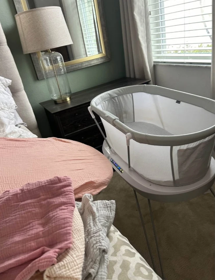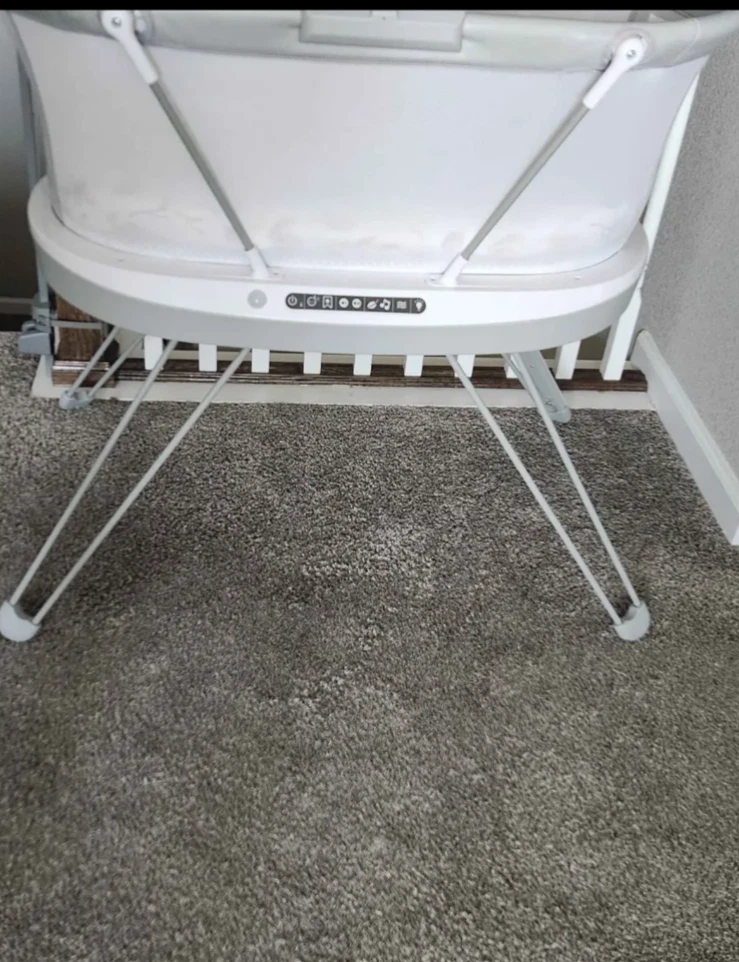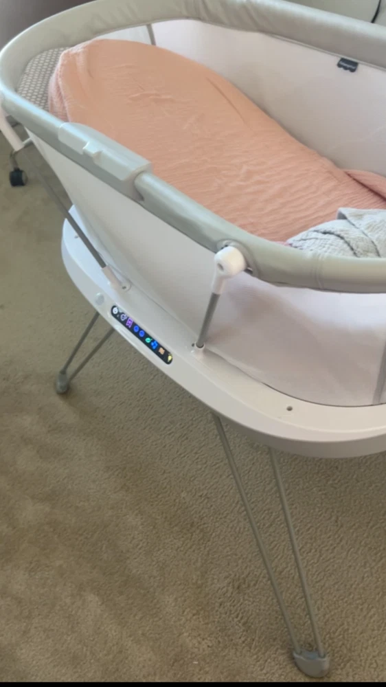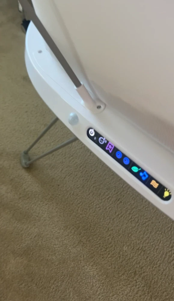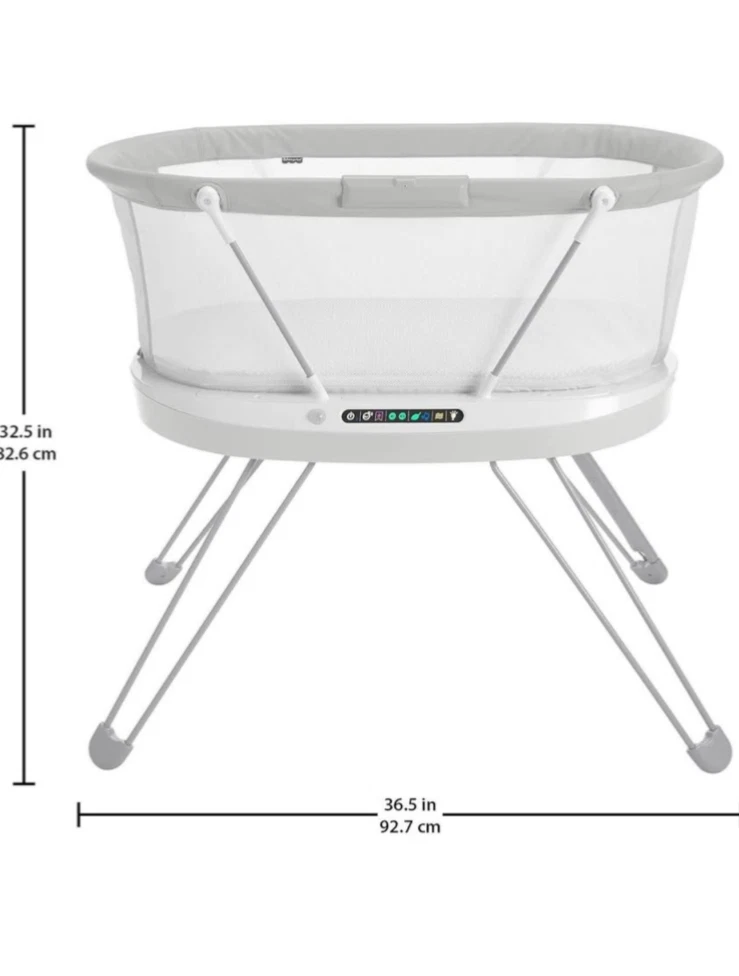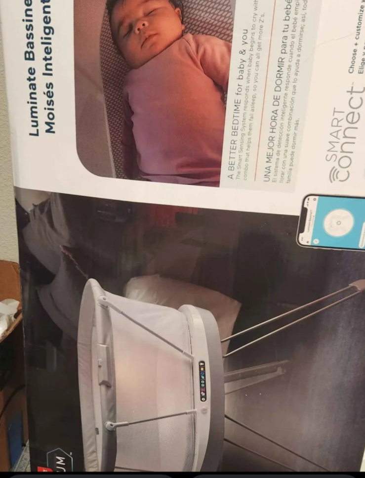 The Fisher-Price Luminate Bassinet is a customizable bedside crib that can help your newborn fall asleep with a variety of calming features you can control from your smart device. The built-in Smart Sensing System can detect your baby's cries and respond with music and vibrations to help soothe them back to sleep. This baby bassinet also features a crib light and motion-activated floor light to illuminate your path for nighttime check-ins, plus breezy mesh sides. (Max. weight 20 lb/9 kg) Use only with a child who is unable to push up on hands and knees, pull up or sit unassisted. Stationary bedside bassinet with built-in sound detection and customizable lights, music, white noise and vibrations controllable from a smart device with the free Smart Connect app Smart Sensing System detects and responds to your baby’s cries with 3 soothing options. Each response mode features music & sounds, including the 20-minute Ready, Settle, Sleep playlist Select an auto shut-off timer (up to 2 hrs) or continuous play with volume control and 3 levels of vibrations. Choose our musical playlist or build a custom playlist with 10 included songs Gentle floor light automatically turns on to illuminate your path as you approach, plus a soft amber crib light for nighttime check-ins and feedings Includes AC adapter and soft, machine-washable mattress sheet. Wipeable mattress pad measures 31.63 inches x 15.75 inches