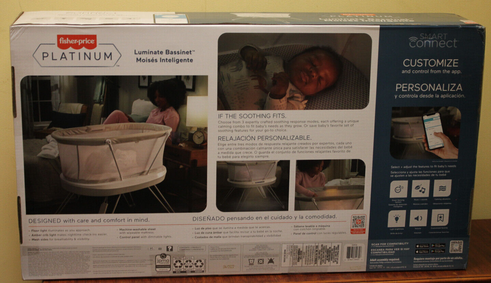high_end_electronics_ny high_end_electronics_ny STORE NEWSLETTER Add Store to your Favourites and receive email newsletters about new items and special promotions! SIGN UP NOW Product Description Condition description Description (Item is brand new Sealed - box may have wear from storage) The Fisher-Price Luminate Bassinet is a customizable bedside crib that can help your newborn fall asleep with a variety of calming features you can control from your smart device. The built-in Smart Sensing System can detect your baby's cries and respond with music and vibrations to help soothe them back to sleep. This baby bassinet also features a crib light and motion-activated floor light to illuminate your path for nighttime check-ins, plus breezy mesh sides. (Max. weight 20 lb/9 kg) Use only with a child who is unable to push up on hands and knees, pull up or sit unassisted. Highlights Stationary bedside bassinet with built-in sound detection and customizable lights, music, white noise and vibrations controllable from a smart device with the free Smart Connect app Smart Sensing System detects and responds to your baby’s cries with 3 soothing options. Each response mode features music & sounds, including the 20-minute Ready, Settle, Sleep playlist Select an auto shut-off timer (up to 2 hrs) or continuous play with volume control and 3 levels of vibrations. Choose our musical playlist or build a custom playlist with 10 included songs Gentle floor light automatically turns on to illuminate your path as you approach, plus a soft amber crib light for nighttime check-ins and feedings Includes AC adapter and soft, machine-washable mattress sheet. Wipeable mattress pad measures 31.63 inches x 15.75 inches ANY QUESTIONS PLEASE ASK. IF FOR SOME REASON YOU NOT SATISFIED PLEASE CONTACT US BEFORE LEAVING NEGATIVE FEEDBACK. PAYMENT We accept PayPal payment only Payment should be completed within 4 (Four) days of auction closing. Or unpaid dispute will be filed for closing auction. We will leave a positive feedback immediately after payment is received. We appreciate a positive feedback as much as you do. If for some reason there is any issue with the purchase, please contact us prior to leaving feedback, and we will be glad to work with you to have it resolved. Please give us a chance to make things right. RETURN All of our items come with a 30-day return policy. We ensure all our items are in working condition prior to shipping unless they are sold for parts or as is. In the event that you receive the item that is not to the standards above, please contact us via e-Bay messages. Your satisfaction is our Guarantee! If you are not completely satisfied with the product that you received, simply contact us through the eBay messaging system and we will take care of the rest. Our professional qualified staff will attempt to the resolve the issue in the possible case of a connect or compatibility issue. If the issue cannot be resolved we will either have a replacement shipped out to you or we can issue a refund back to your account. We will make your experience as simple and satisfying as possible. SHIPPING Ship from New York, and only to eBay address. Package handling will be the same day of order placed before 2PM, so please make sure entering correct payment and shipping information before checking out. Once your payment is completed, please inform us by eBay message if the changes are needed before we send the product. If an address change is needed, you will be responsible for any fees associated in the condition that you contact us after we ship your item. All our items ship FREE. If you would like to get expedite or overnight shipping please choose desired option at checkout. ABOUT US Welcome to our eBay store. Our goal has always been to deliver the best quality products at the lowest possible price, providing only top notch customer service. Buyer satisfaction is our top priority. If you're not pleased with your purchases, we'll be glad to make an exchange or provide full refund less Shipping and Handling (S&H) charges within 30 days of your purchases. For any Exchange, Refund or Return, the item must be in its original condition, including the box, packaging, and all the accessories or gifts. We'll provide prepaid return shipping label if the return is a result of our error. Please allow up to 7 business days for returns to be processed. Shipping and Handling (S&H) charges are not refundable. General Links eBay Store (19) About Us Policies Payment Return Shipping Shop Safely With Powered by SixBit's eCommerce Solution
