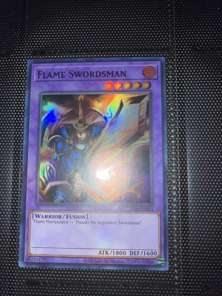 This Flame Swordsman card from LOB-003 is an awesome collector's piece! The artwork is vibrant, and as a 1st Edition, its value has skyrocketed. Even though I don’t play with it anymore, holding onto it feels like owning a piece of Yu-Gi-Oh! history. Highly recommended for fans and investors alike!