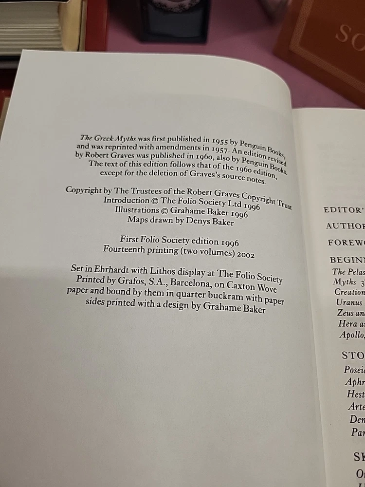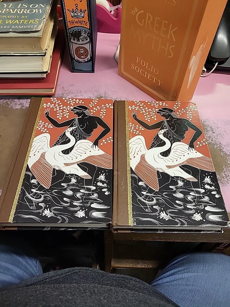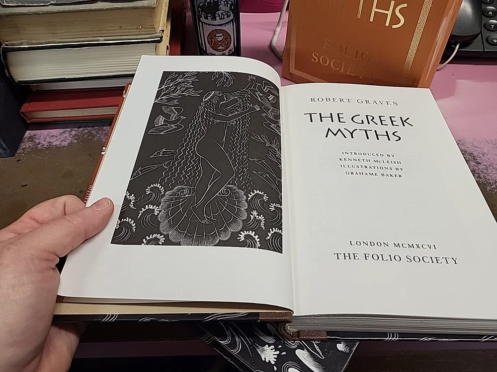 The product is a limited edition 2-volume set of "The Greek Myths" by Robert Graves, published by Folio Society in 2011. The set is bound in leather and comes in a slipcase, making it a special collector's edition. The books are illustrated and written in English, focusing on the topics of folklore and mythology, making it a valuable addition for literature and fiction enthusiasts.