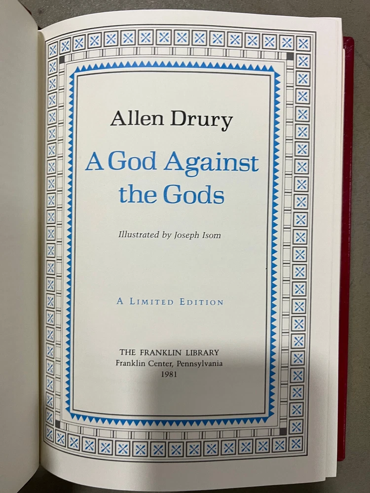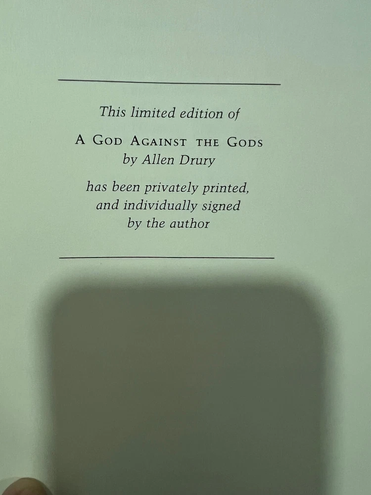 A God Against the Gods by Allen Drury SIGNED Franklin Library Limited Edition Excellent Condition ! New Books get listed daily !!! 100s of Easton Press and Franklin Library books available!! All books get cleaned with a leather cleaner to remove any dust, odor and restore the beauty of leather!! Combined Shipping Discount: USA buyers - every book $1 off International combined shipping: 1 or 2 books - $40 3 or 4 books - $70 5 + books $17 per book 10+ books $13 per book WE SHIP DAILY!! RETURNS: Hassle-Free 30-days return policy and we pay for a return !! Check our Inventory (Link to eBay Store): http://stores.ebay.com/EastonFranklinBooks