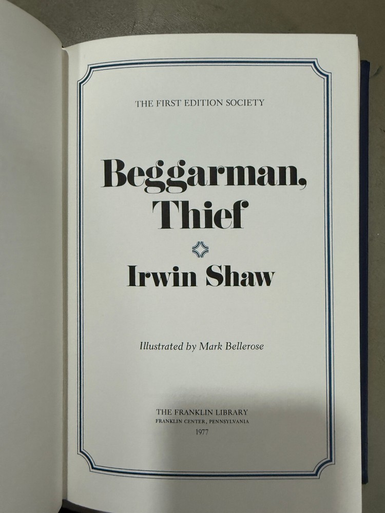 Beggarman Thief - Irwin Shaw Franklin Library Limited First Edition Society Books Series Very Good Plus Condition ! New Books get listed daily !!! 100s of Easton Press and Franklin Library books available!! All books get cleaned with a leather cleaner to remove any dust, odor and restore the beauty of leather!! Combined Shipping Discount: USA buyers - every book $1 off International combined shipping: 1 or 2 books - $45 3 or 4 books - $75 5 + books $17 per book 10+ books $13 per book WE SHIP DAILY!! RETURNS: Hassle-Free 30-days return policy and we pay for a return !! Check our Inventory (Link to eBay Store): http://stores.ebay.com/EastonFranklinBooks