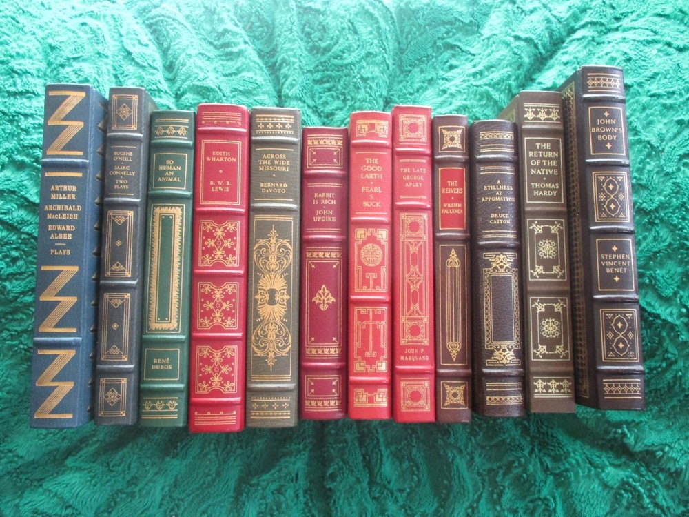 Available for your selection are the privately printed and bound exclusively for members of the Franklin Library Pulitzer Prize Classics provided by the Franklin Library in full leather with gold gilt pages and sewn in bookmarks in like new condition. Select your title from dropdown and if you choose more than one - shipping will be calculated for combined shipping. Included for your selection: 1. Death of Salesman Arthur Miller J.B. Archibald MacLeish, and Delicate Balance by Edward Albee - 1986 264 pages. 2. John Brown's Body - Stephen Vincent Benet - 1986 371 pages. 3. The Return of the Native - Thomas Hardy - 1980 418 pages - NOT part of the Pulitzer Prize Classics. 4. A Stillness At Appomattox - Bruce Catton - 1983 - 438 pages. 5. The Reivers - William Faulkner - 1983 - 289 pages. 6. The Late George Apley - 1984 - 303 pages. 7. Edith Wharton - R.W.B. Lewis - 1986 - 596 pages. 8. So Human an Animal - Rene Dubos - 1985 - 264 pages. 9. Strange Interlude Eugene O/Neill and Green Pastures Marc Connelly - 1985 - 264 pages. 10. The Good Earth - Pearl S Buck - 1983 - 319 pages. 11. Rabbit is Rich - John Updike - 1985 - 467 pages. 12. Across the Wide Missouri - 1984 - 452 pages. Thank you for looking. All items will be packaged carefully for protection from moisture and rough handling.