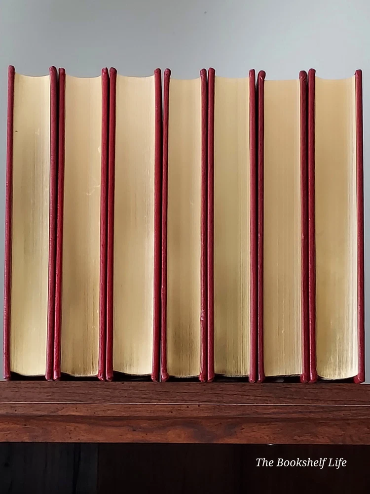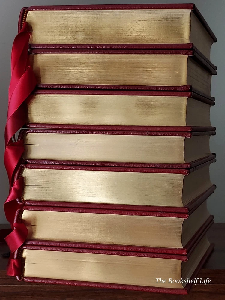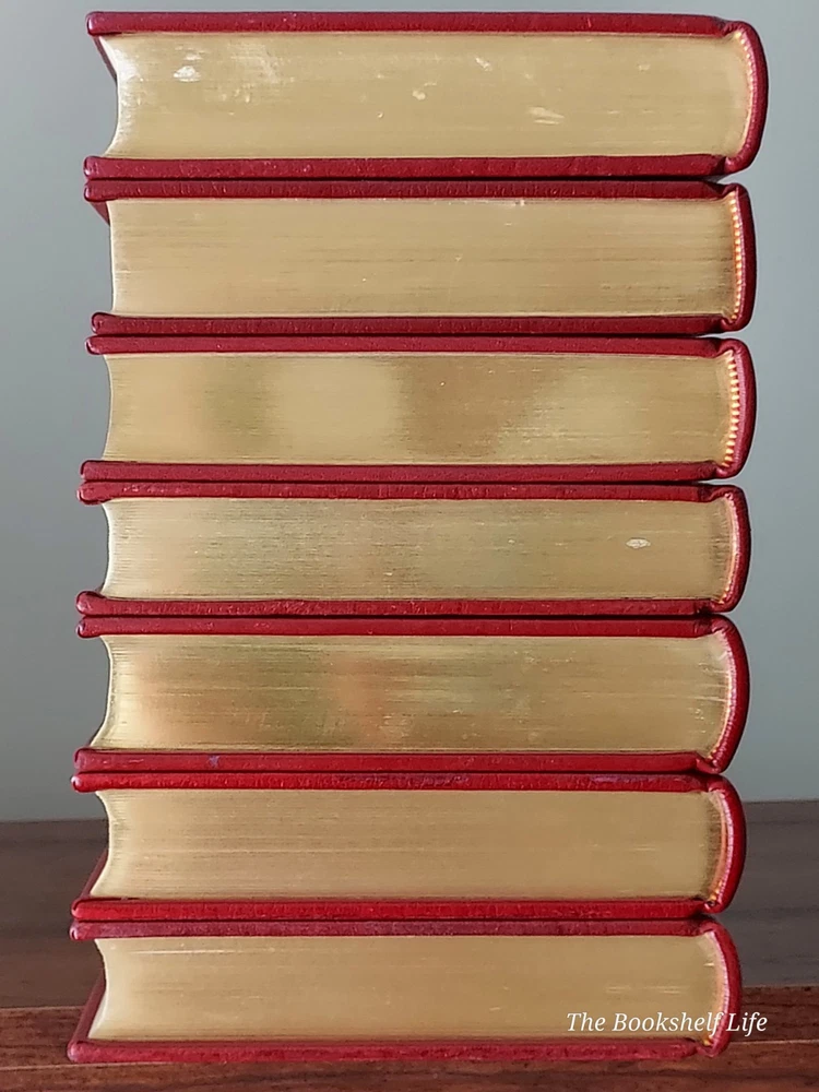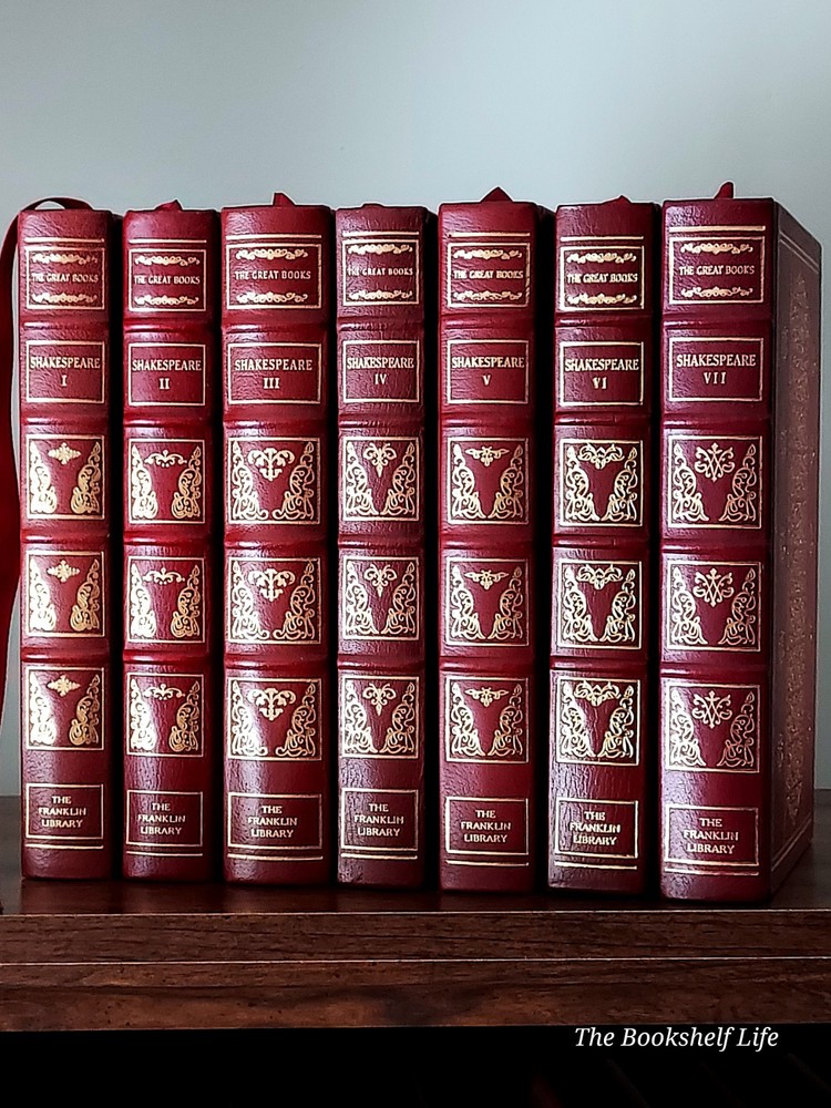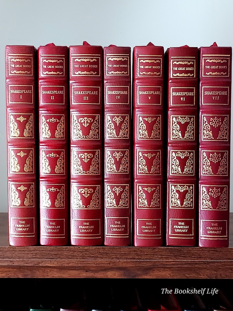 This SCARCE complete leather limited edition seven volume book set from The Franklin Mint is in VERY GOOD condition with no markings inside or out and no attached bookplates on any volume. There are some tiny superficial cover imperfections to be found on these books, but nothing significant by any measure. There is pretty minimal scratching to the gilding on the text blocks. All the paper on all volumes is perfect or virtually so. All moiré end leaves on 6 of 7 volumes are virtually perfect with no fading. Only volume 1 has typical fading around the edges. I'm not sure if these books were read/used or not, but they all have solid and tight spines. All external sides of all volumes are represented in the pictures so you can make an informed purchase decision. I had to decide what to prioritize in the 24 allotted pictures slots, so I made sure to make the most of them with as many clear pictures of all volumes, and just a few designated for informational purposes. I think I've done a pretty thorough job with the listing of this set of books, but if I missed something or if you have any questions, I'll do my best to answer them. This 7 volume complete set is the definitive publication of this work. There isn't another publication of this literature that is so thoroughly and expertly crafted and presented. For a fan of the legendary Bard of Avon, there really isn't a finer collection of his works than this. This book set is part of the Franklin Library's prestigious definitive publication commemorating the 25th anniversary of Encyclopedia Britannica's "The Great Books of the Western World" series. All books in my store are clean and free of odors, dust, or dander and come from a well-ventilated building with NO smoking, vaping, pets, children, or even food and cooking. Simply put, these books are fresh, crisp, and cared for. COMBINED SHIPPING is always automatically active, and if you buy 5 or more in the same transaction, FREE SHIPPING!! Please feel free to check out the HUNDREDS of different premium collectible books I have for sale right now, nearly all of which are LIKE NEW or actually BRAND NEW and unopened. Subscribe or check back for new listings of rare, interesting, and beautiful books. I ship and physically mail books daily and often even within hours of purchase.