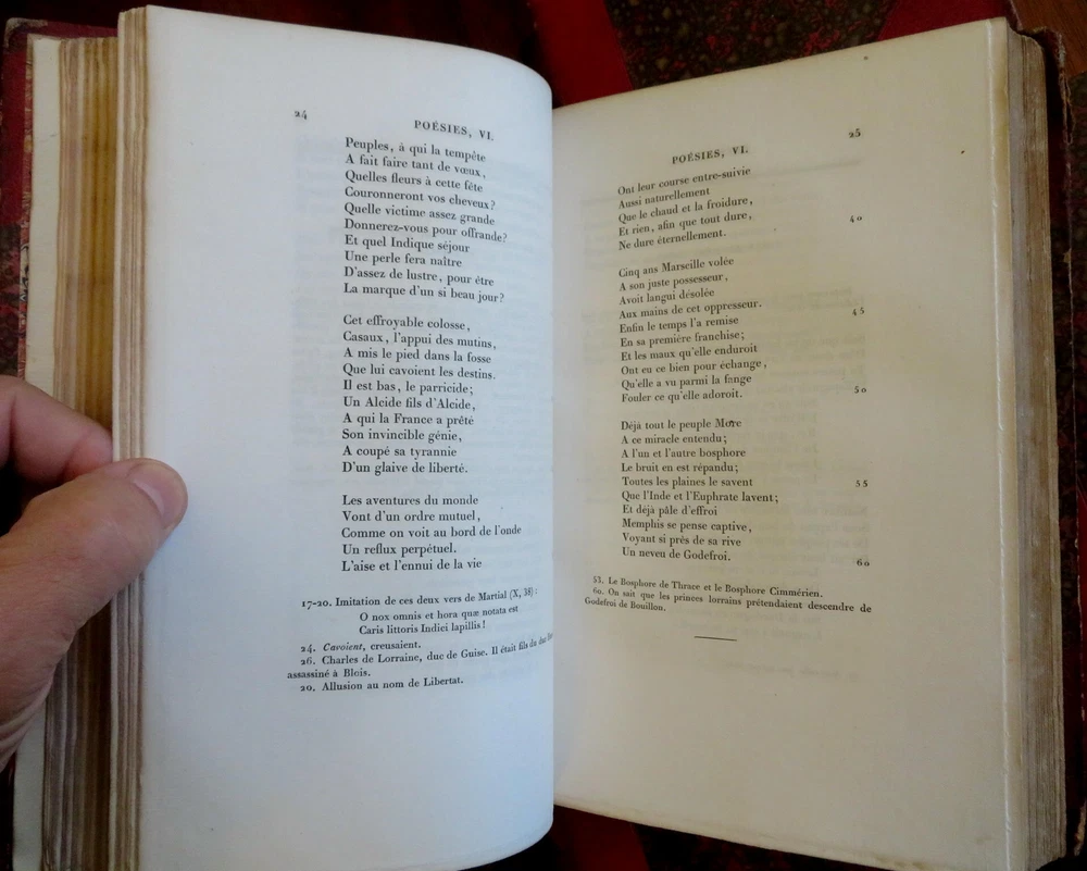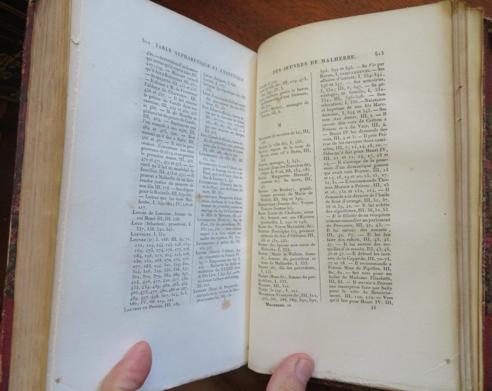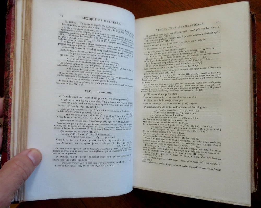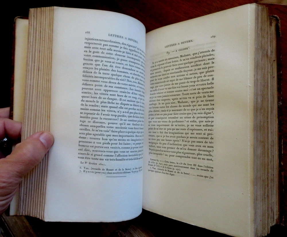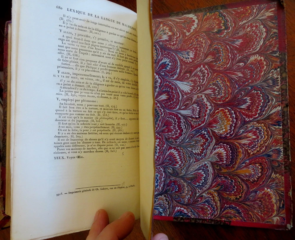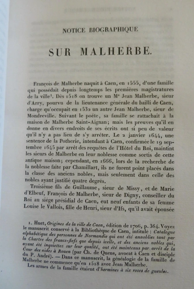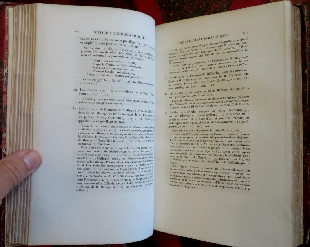 French Poetry Francois de Malherbe Complete Works 1869 rare leather 5 vol. set French Poetry Francois de Malherbe Complete Works 1869 rare leather 5 vol. set (Old Books, 19th Century Books, Leather Books, French Books, Poetry, Francois de Malherbe). Ouvres Completes de Malherbe. Published 1862-69, Paris by Hachette Et Cie. 5 volumes, each c. 600-675 pages. Text in French. Scarce set in any condition. Attractive antiquarian 1/2 leather bindings, raised bands, gilt title lettering, gilt ruled compartment decorations, marbled end papers & covers, top edges gilt, deckled edges. Set is physically old and shows some signs of handling and time. Bindings age worn but still appealing, leather and joints scuffed and rubbed but still supple, spine ends worn with small chipping in spots, some age staining to leather, board tips bumped with fraying, set remains overall very attractive as an object. Text block paper is gently age toned as typical, internally set remains mostly clean, tight and sound. A set which has been taken care of but may/ does not look like new. Still attractive on the shelf. Set displays a pleasing and unique age patina and is in rather nice antiquarian condition, any age flaws seem easy to overlook or forgive. Please review photos for more detailed attempt to present this scarce set as it survives. We often over-describe any flaws that many sellers would not even bother to mention since most people would overlook them as minor and unworthy of comment. Many people tell us the books they receive from us are nicer in person than they appears on the screen. We want you to be clear about what you are buying, so we take numerous photos and try to describe it openly and honestly. Books Measure c. 9 1/4" H x 6" W. [B7473-BR225].