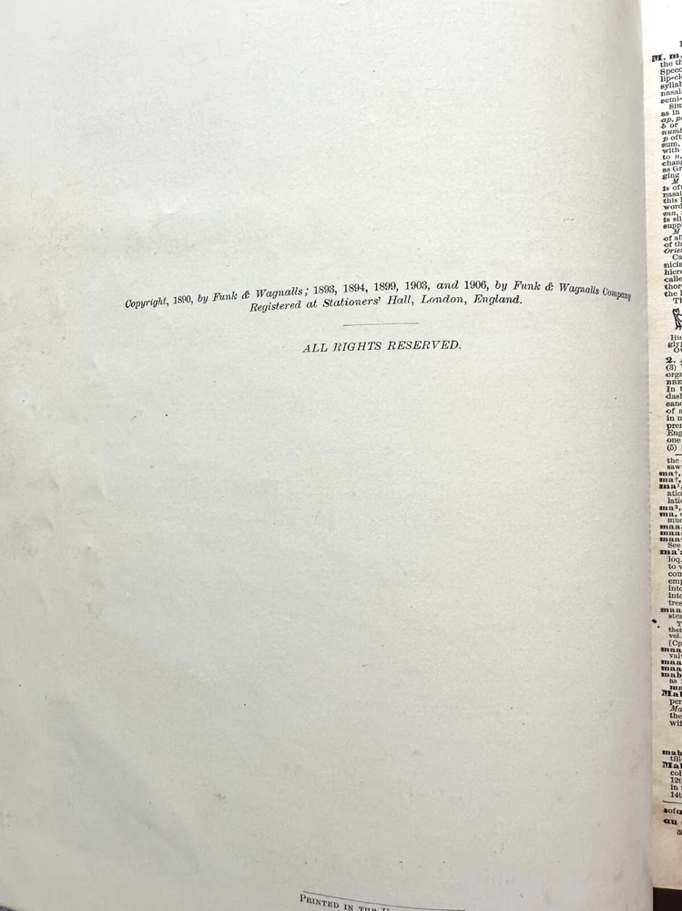 Funk & Wagnalls Vintage 2 Volume Dictionary Set 1907 Color Plates A Standard Dictionary of the English Language Isaac K. Funk, Editor-In-Chief Vol 1 - A-L Vol 2 - M-Z "Abridged Cyclopedia with Atlas of the World" Marbled endpapers Each is 9.5" x 12.5" x 3" and weighs 10 lbs 5 oz - total weight is 20 lbs 10 oz Cover is fair with leather deteriorating. Interior nice. No writing, stains or tears. Nice plates. Contact me for additional photos.