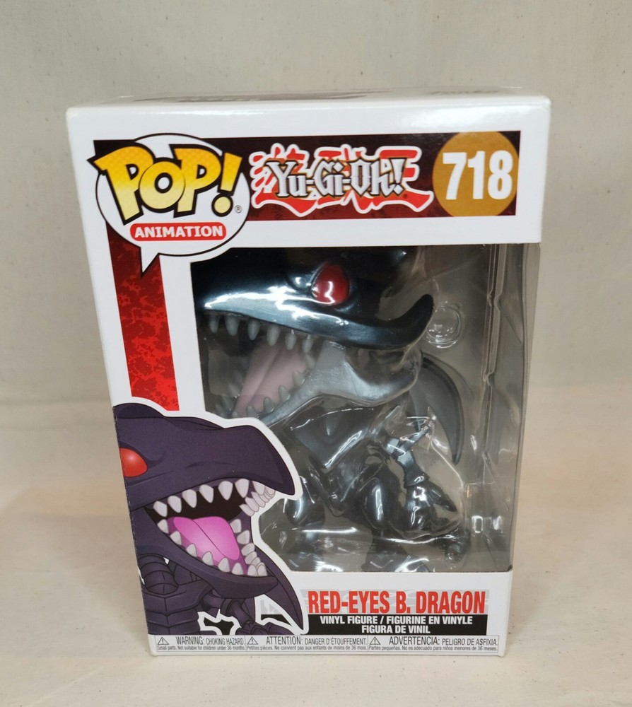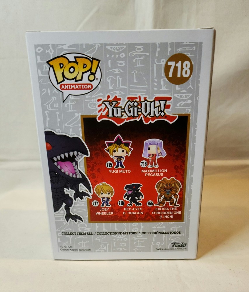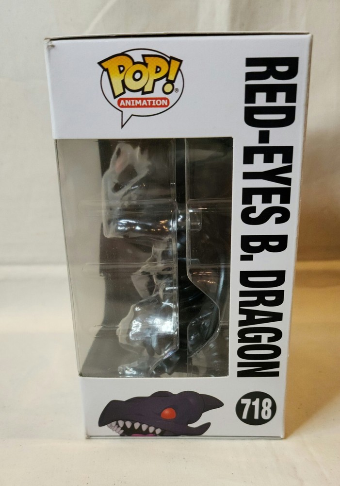 This Funko Pop! Animation figure features the iconic Red-Eyes Black Dragon from the popular Yu-Gi-Oh! franchise. Made of high-quality vinyl material, this collectible figure is perfect for fans of all ages. The black color of the dragon is beautifully detailed and will make a great addition to any collection. This figure comes in its original packaging, opened for display purposes only, and includes box number 718. The Pop! product line by Funko is known for its high-quality and collectible figures, and this one is no exception. Whether you're a fan of animals or the Yu-Gi-Oh! TV/streaming show, this figure is a must-have for your collection. SEE PICTURES FOR DETAILS