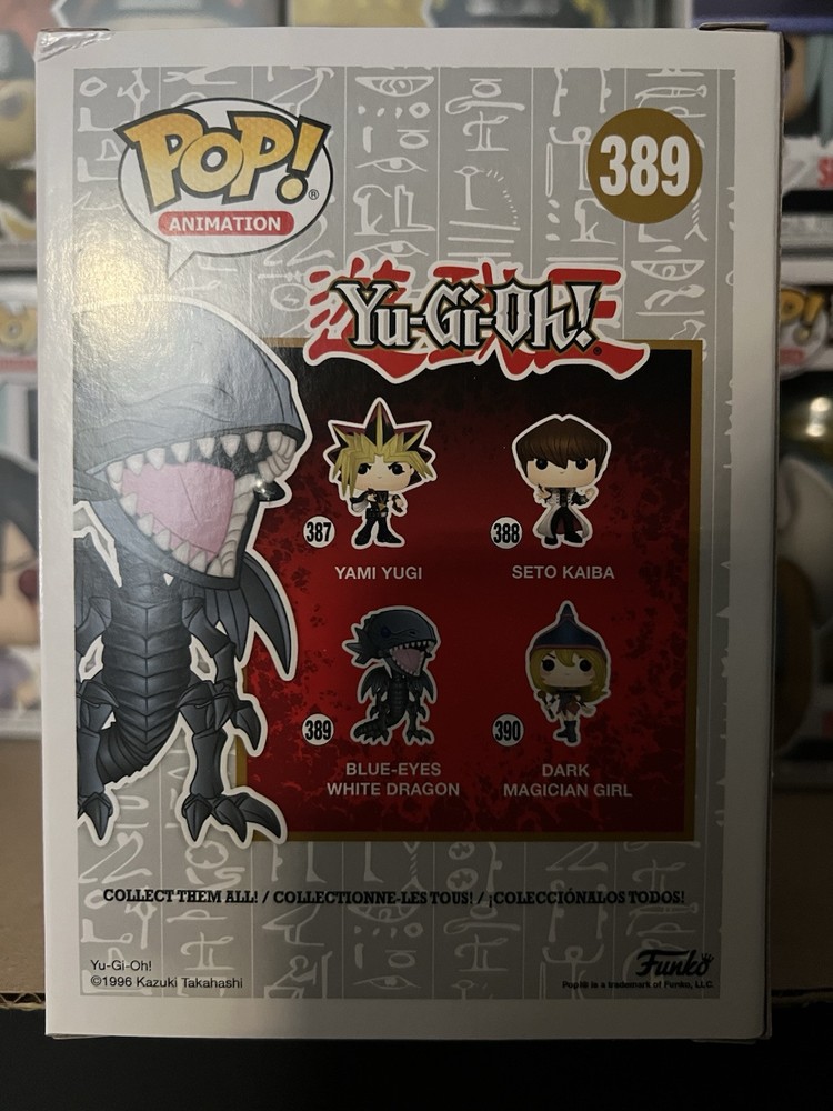 Funko Pop! Vinyl: Yu-Gi-Oh! - Blue Eyes White Dragon #389 is a collectible figure featuring the iconic Blue Eyes White Dragon character from the popular Yu-Gi-Oh! franchise. This Funko Pop! Vinyl figure is a part of the Collectible Figures & Bobbleheads category and is sought after by collectors and fans of the series.