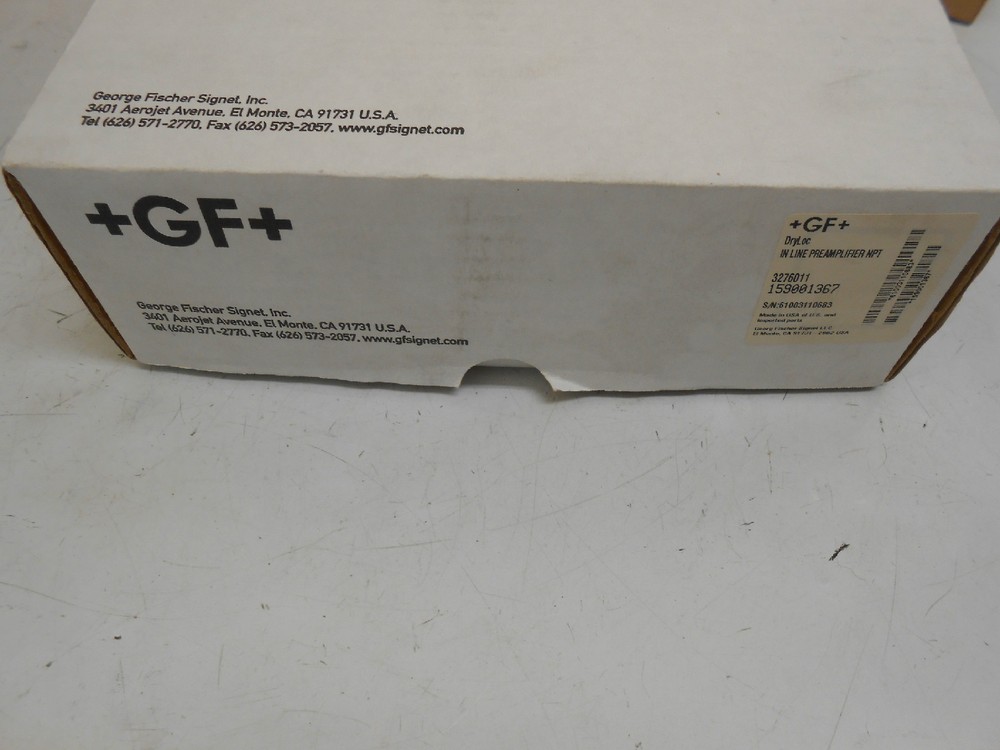 YOU ARE BUYING ONE NEW GEORGE FISCHER 159001367 IN LINE PRE AMPLIFIER 3/4"NPT 15FT CABLE. THIS IS NEW SHELF SURPLUS AND IS GUARANTEED WORKING. IF YOU HAVE ANY QUESTIONS PLEASE HIT ASK THE SELLER A QUESTION. (MW GCAB*1X 1)(JLS) ESTIMATED RETAIL PRICE-$282.50 International Buyers Please Note: Import duties, taxes and charges are not included in the item price or shipping charges. These charges are the buyer's responsibility. Please check with your country's customs office to determine what these additional costs will be prior to bidding or buying. We do not mark merchandise values below value or mark items as "gifts" - US and International government regulations prohibit such behavior. Surplus Sam's Inc. is not an authorized distributor, reseller or representative of the products featured on this website. All product names, trademarks, brands and logos used on this site are the property of their respective owners. The depiction, description or sale of products featuring these names, trademarks, brands and logos is for identification purposes only and is not intended to indicate any affiliation with or authorization by any rights holder. Shipping is for the lower 48 US states only. All others please contact us for shipping quote.