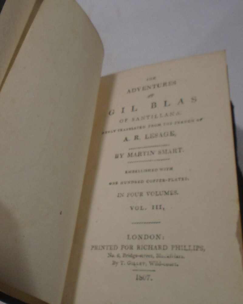 100 copperplates by Warner. 'Gil Blas' is an adventurous novel following the eponymous character, who is born into poverty. He goes to University and is suddenly faced with a bright future, before being forced to help robbers, and has to face jail time. The novel follows him through his career and his rising to royal court. translated by Martin Smart