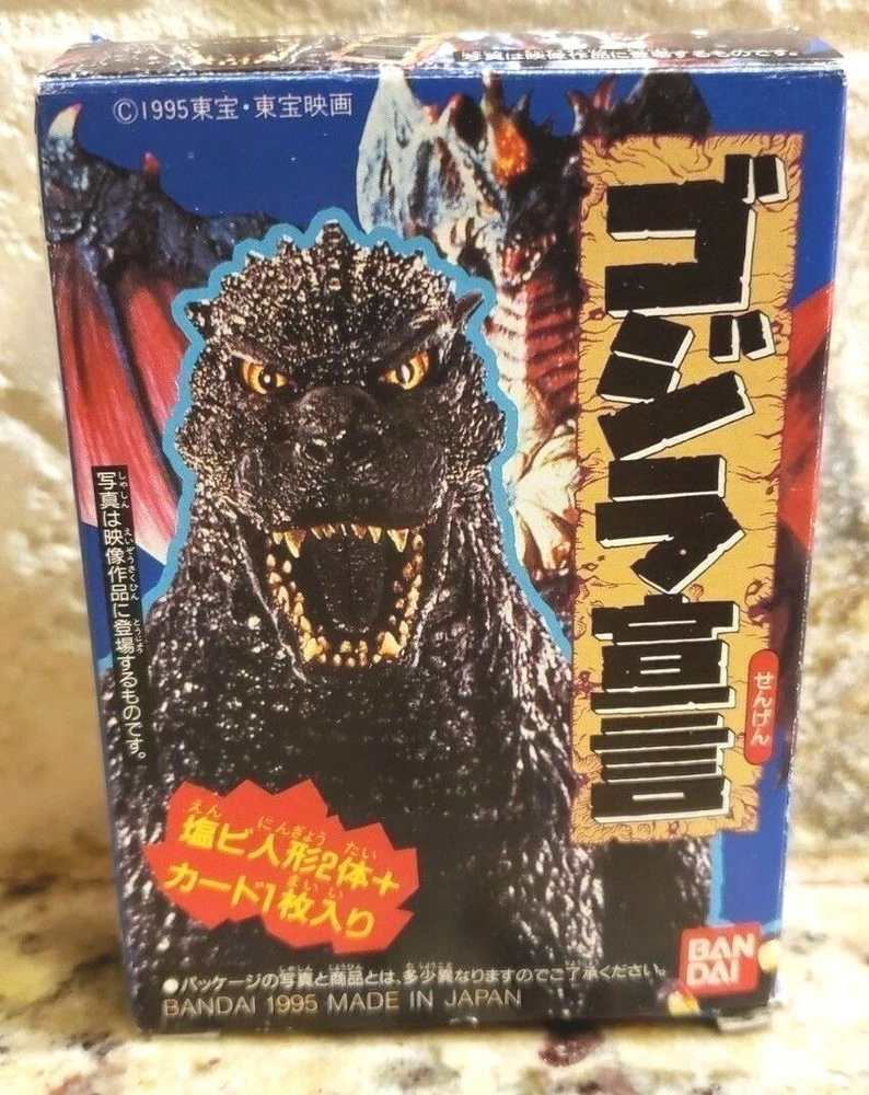 **** HOLIDAY SALE **** NORMALLY COSTS: $24.99 PLEASE READ THE ENTIRE DESCRIPTION FOR MERCHANDISE DIMENSIONS, SHIPPING OPTIONS AND RATES, AS WELL AS, PAYMENT INSTRUCTIONS "BEFORE BIDDING". This auction is a 1 BRAND NEW BANDAI CHINA, 1995 GODZILLA PROCLAMATION BLUE 2 PIECE FIGURE SET that consists of 1 MINI GODZILLA FIGURE, 1 MINI DESTROYAH FIGURE, 1 GODZILLA VS DESTROYAH HAND CUT CARD and 1 "FREE" DESTROYAH STICKER. All the items in this Auction are considered "RETIRED PIECES" , as they are NO LONGER BEING PRODUCED. This SET is GREAT for any GODZILLA VS DESTROYAH or GODZILLA & COMPANY FAN and they make the PERFECT COLLECTIBLES or GIFT. The MINI GODZILLA Figure is 1 & 1/2 inches Tall, 2 & 1/4 inches Long and 1 & 1/4 inches Wide. The Figure CAN NOT BE POSED and requires some EXTREMELY MINOR ASSEMBLY (TAIL NEEDS TO BE INSERTED INTO BODY). The MINI DESTROYAH FIGURE is 1 & 3/4 inches Tall, 2 1/2 inches Long and has a Wing Span of 3 inches. The Figure CAN NOT BE POSED and requires some EXTREMELY MINOR ASSEMBLY (WINGS & TAIL NEEDS TO BE INSERTED INTO BODY). These Monsters appeared together in the Movie, GODZILLA VS DESTROYAH. These PIECES are meant for DISPLAY PURPOSES and the SERIOUS COLLECTOR ONLY. **** PLEASE NOTE: THEY ARE NOT MEANT TO BE PLAYED WITH, ESPECIALLY BY YOUNG CHILDREN. THE FIGURES ARE SMALL AND COULD BE A CHOKING HAZARD. This AMAZING SET was made by BANDAI, CHINA in 1995. It is from their "GODZILLA PROCLAMATION BLUE SET" , which is NO LONGER BEING PRODUCED and is now a "RETIRED SERIES". Any Pieces from this Set are VERY RARE and EXTREMELY HARD TO FIND. The FIGURES comes in their ORIGINAL PACKAGING. T he BOX has been OPENED ON THE TOP so we could take pictures of the pieces, but please remember, the items are BRAND NEW. Anyone who is a Godzilla VS Destroyah or Godzilla & Company Fan will definitely want to own this FANTASTIC SET. They are MUST HAVE PIECES for any Godzilla VS Destroyah or Godzilla Collector. Take a look at the other merchandise we have up for auction. If you are interested in purchasing more than 1 of our items, please do so and then WAIT FOR ME TO SEND YOUR INVOICE. This way you will MOST LIKELY RECEIVE A DISCOUNT ON SHIPPING and all items CAN USUALLY (this really depends on the size and weight of the pieces) BE SHIPPED TOGETHER IN 1 BOX. **** IMPORTANT NOTE: IF YOU PAY FOR ITEMS INDIVIDUALLY, THEY MUST BE SHIPPED INDIVIDUALLY. If you have any questions, please feel free to contact us through E-Bay. WE WILL ONLY SHIP WITHIN THE UNITED STATES. NO EXCEPTIONS WILL BE MADE AT THIS TIME. Shipping is via 1st Class Mail with a Delivery Confirmation TRACKING #. This service usually takes an average of 3 to 6 days after shipping, however, sometimes it can take longer. This method costs $6.99 for this individual auction and the merchandise in being shipped SECURELY IN A STURDY BOX FOR SAFETY, NOT A BUBBLE ENVELOPE WITH JUST STAMPS ON IT AND NO TRACKING INFORMATION. Priority Mail Shipping with Automatic Insurance covering the items Purchase Price of $19.99 and a Delivery Confirmation TRACKING # (this service usually takes 2 to 4 days after shipping) is also available and costs $11.50 for this individual auction. PROCESSING TIME IS BETWEEN 1 and 5 BUSINESS DAYS AFTER PAYMENT HAS BEEN CLEARED BY PAYPAL.