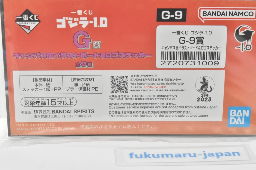 GODZILLA MINUS ONE Illustration board & logo sticker 9 types complete set BANDAI Description Condition : New Size : (board) about 148mm × 210mm (5.8268 in × 8.2677 in) (sticker) about 80mm (3.1496 in) "GODZILLA MINUS ONE Ichiban Kuji" Canvas-style illustration board & logo sticker 9 types complete set. Godzilla Godzilla vs. Biollante Godzilla vs. King Ghidorah Godzilla vs. Mothra Godzilla vs. Mechagodzilla Godzilla vs. Space Godzilla Godzilla vs. Destroyah Godzilla vs. Megaguirus Godzilla FINAL WARS Payment Payment is due within 5 days of the auction end. Shipping We use " International courier service " We attach the tracking number . International Buyers - Please Note: I mport duties, taxes, and charges are not included in the item price or shipping cost. These charges are the buyer's responsibility. Please check with your country's customs office to determine what these additional costs will be prior to bidding or buying.