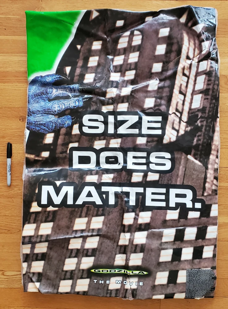 We have had 100% positive feedback on ebay for over 15 years. Deal with a seller with a proven track record who you can trust! BIN, 1st BID WINS! The first person to bid will win the Buy it Now listing immediately! Buyers like YOU make eBay GREAT! DESCRIPTION: 🔥 RARE! GODZILLA PROMO 1998 Taco Bell Store Display Decal Poster, Movie Oddball! 🔥 This RARE Taco Bell Godzilla display Window decal poster is from the 1998 Taco Bell promotion of the movie "Godzilla". This PROMO item was not available for sale. It measures around 3 feet by 2 feet. It has several rips and wrinkles (see pics). Perfect for a Godzilla collector! This item will make a nice addition to your Godzilla collection! We doubt you will EVER see this up for sale again! Item # : 9151 A2. Description : Huge Godzilla Window Sticker, Godzilla On Building Poster. It says : Find Godzilla and Win. Measurements : 3ft x 2ft THANK YOU for looking and have a Great Day! SELLER INFO: Please take a moment, and view some of our other auctions by CLICKING HERE ! Sellers, please do not use our photos/text please. We do not charge sales tax. Items are from a smoke-free and pet-free environment. Shipping tracking number uploaded to eBay for all orders. All items are packed well to ensure that they arrive to you in the best condition possible.