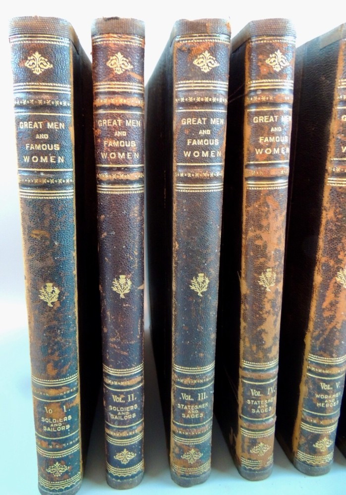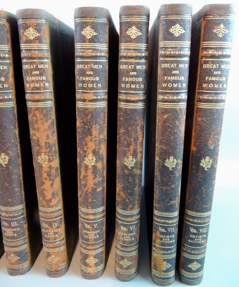 Great Men & Famous Women, 8 Vols. Set Complete, Hardcover Book Title: Great Men & Famous Women, 8 Vols. Set, Complete Author(s): Edited by Charles F. Horne Publication: Selmar Hess Publishers– NY, Copyright 1894, 1st Edition Description: Hardcover in brown leather binding with gold gilt title on cover and spine, marbled end papers. Illustrated with wood-engravings and typogravures. A series of pen can pencil sketches of the lives of more than 200 of the most prominent personages in history. Beautiful set of books and plates. Eight volume set is illustrated with tissue-protected photogravures, wood engravings and typogravures. Volumes 1 & 2: Soldiers and Sailors, Volumes 3 & 4: Statesmen and Sages, Volumes 5 & 6: Workmen and Heroes, Volumes 7 & 8: Artists and Authors. Each volume 204 pp. . Covers are good, show some rubbing and wear but good, inside, all pages of the book are very good. B&W Illustrations. 4to (12" x 9.5") . The entire set weighs 29 lbs. Condition: Very good, corner bumps, normal age wear, due to age, leather tend to powderized. Pls. magnify photos for over-all condition. Notes: Great effort is made to ensure the item is described as accurately as possible. All items are sold AS IS and I encourage you to look at all pictures and ask any questions you may have regarding the item prior to bidding. I am more than happy to answer questions and/or take more pictures if necessary (some pictures may show shadows or reflections of lighting used). As for feedback, I will leave positive feedback once payment is received. It is greatly appreciated that you also leave positive feedback once the item has been delivered and you are satisfied with it. If you are unhappy with the item once it is received, please contact me prior to leaving neutral or negative feedback so we can discuss any issues. Payment/Shipping: Upon receipt of payment, item(s) are shipped within 3 business days. Shipping is calculated through eBay, USPS or FedEx, determined by location, size and weight. I also try whenever possible to offer both Priority Mail and Standard Post whichever is the best shipping option. Insurance, tracking number and delivery confirmation are included in the shipping cost. We are extremely careful about packaging the item(s) sold and intend they arrive at your door the same condition as packed. It is important to us and pleased that these objects are in the hands of people who appreciate them. If you have any questions please do not hesitate to ask. Thanks for looking! For Books only we accept International shipping and cost will be based on buyer’s country of residence using USPS Priority Mail with insurance or whatever is the cheapest shipping with insurance. QUOTED SHIPPING COST IS ONLY TO 48 CONTIGUOUS STATES OF USA (EXCLUDING ALASKA & HAWAII). WE DO NOT SHIP TO P.O. BOX. INTERNATIONAL SHIPPING COST WILL BE BASED ON BUYER’S COUNTRY AND WILL SHIP WITH INSURANCE. YOU MAY SEND A MESSAGE TO INQUIRE ON SHIPPING COST, IF IN DOUBT.