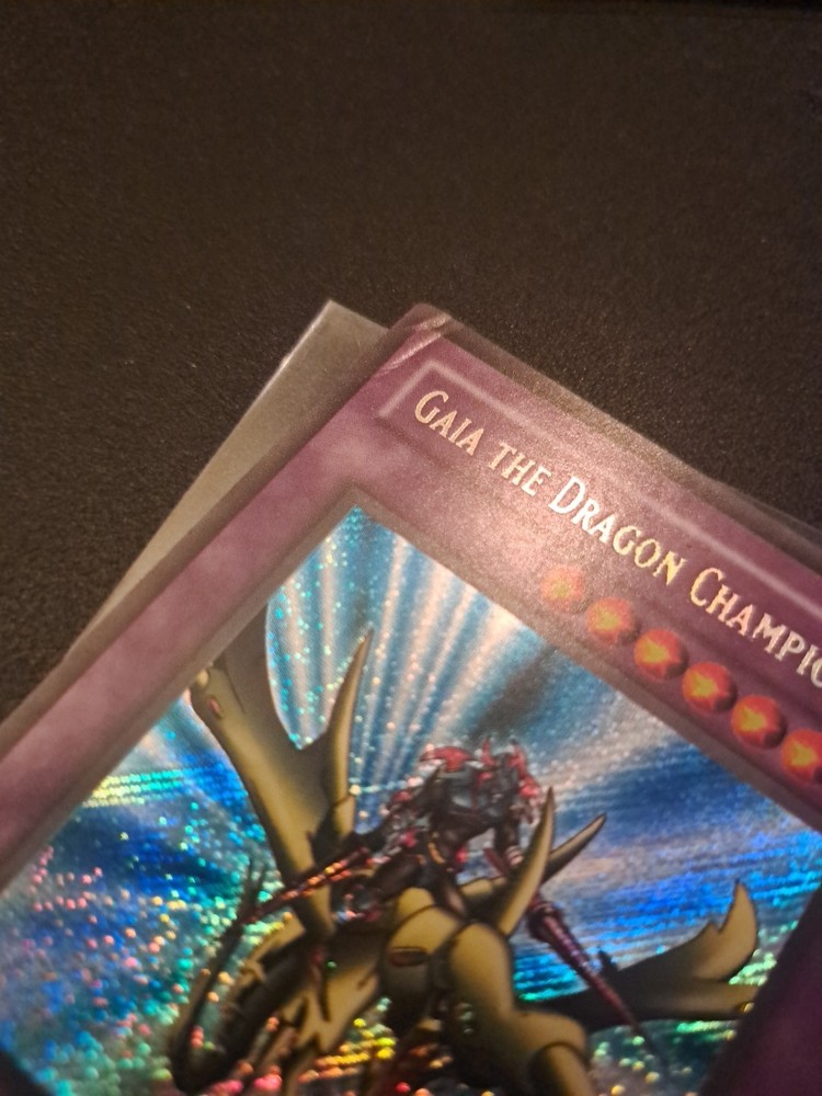 There's a little bit more marks on the back Nothing crazy though The product is a vintage, ultra rare card from the Yu-Gi-Oh! TCG set "The Legend of Blue Eyes White Dragon-1st Edition." It features the character Gaia the Dragon Champion, a Wind attribute dragon card with a high attack power of 2600 and defense of 2100. Manufactured by Konami in 2002, this English language card is a collectible item made of card stock, perfect for fans and collectors of CCG games. Its 1st Edition status adds to its rarity and value within the trading card game community.