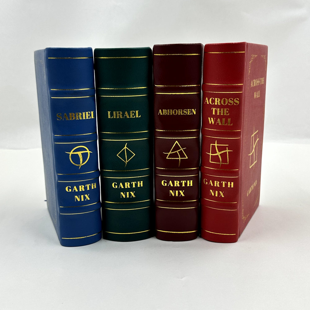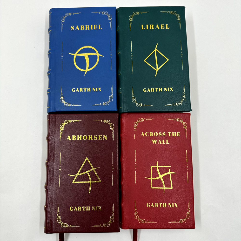 Note: This is not a reprint. The original paperback or hardcover edition has been purchased directly from the authorized distributor or publisher. The book purchased has been carefully bound in genuine leather to enhance its durability and extend its shelf life. Please be assured that no content or pages have been altered or reformatted during the leather binding process. Product Information: - Title of Product: Garth Nix Combo set Sabriel, Lirael, Abhorsen, Across [PREMIUM LEATHER BOUND] Author: Garth Nix (Author) Number of Pages: Publication Year: Language: English Book Synopsis: - Sabriel Sabriel, the daughter of the Abhorsen—who lays the dead to rest—has spent most of her life away from the magical dangers of the Old Kingdom. But when her father goes missing, she must return and take up his responsibilities. With the help of Mogget, a mysterious cat-like creature, and Touchstone, a cursed prince, Sabriel must battle the undead and dark forces to prevent a looming catastrophe. Lirael Lirael, raised among the clairvoyant Clayr, has always felt like an outcast because she lacks the Sight. When she discovers a hidden destiny beyond her home, she sets out on a dangerous quest with her companion, the Disreputable Dog. As ancient threats rise, she learns that her purpose is tied to the fate of the entire Old Kingdom. Abhorsen The final battle against the rising dead reaches a climax as Lirael steps into the role of Abhorsen. Alongside Prince Sameth, she must use her newfound powers to stop the necromancer Hedge and his master, Orannis, the Destroyer, before the world is consumed by chaos. Across the Wall: A Tale of the Abhorsen and Other Stories This collection includes a mix of short stories from the Old Kingdom and other fantastical settings. The highlight is Nicholas Sayre and the Creature in the Case, a novella following Nick Sayre as he is drawn back into the magical dangers of the Old Kingdom. The rest of the collection features a variety of fantasy and adventure stories showcasing Garth Nix's imaginative storytelling. Product Description: This exquisite book is crafted exclusively for discerning readers and collectors who seek to elevate and preserve their literary treasures. Bound in GENUINE LEATHER, it showcases the finest craftsmanship with luxurious GOLDEN LEAF DETAILING adorning the spine, front cover, and back cover. The elegance is further enhanced by EDGE GILDING, giving the book an opulent finish. Customize Your Leather-Bound Edition with Color Options: - 1. Select from a wide array of leather colors at no additional cost. Share your preferred leather color with us via email. 2. Choose from a diverse range of leather colors with colored marbles (endpaper), including Brown, Crimson Red, Forest Green, Royal Blue, Rich Black, Hot Pink, Yellow, And Tan . 3. For a truly unique touch, request Multi-Color Labels to complement your custom leather-bound book spine. 4. Own a timeless masterpiece that adds sophistication to any collection! Artisan Quality and Dispatch Information: - ● We appreciate your understanding that these Leather-Bound Books are meticulously crafted works of art, requiring significant time and attention to detail to achieve their exceptional quality. ● Our standard handling time for dispatch is 35 business days, as each book undergoes various stages of production. However, we do accommodate special & requests for specific occasions. ● We offer additional customization options upon request, subject to extra charges. Additionally, we handle both printing and leather binding for all books. ● Product Disclaimer : Please note that as Leather is a Natural Material, minor variations in color or texture may occur.